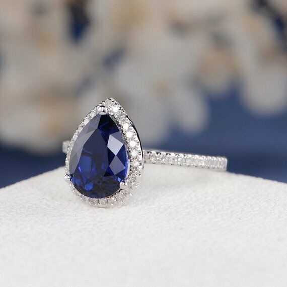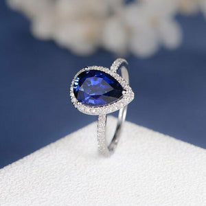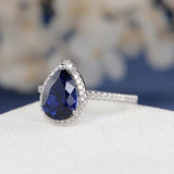 1ct Pear Cut Blue Sapphire Engagement Ring 14k White Gold Finish Halo Promise