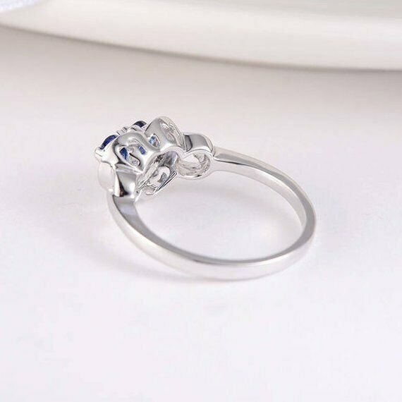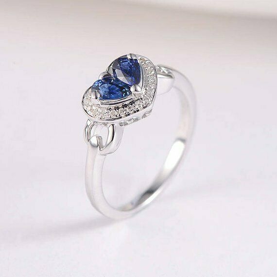 1ct Pear Cut Blue Sapphire Engagement Ring 14k WhiteGold Finish Halo Heart Shape
