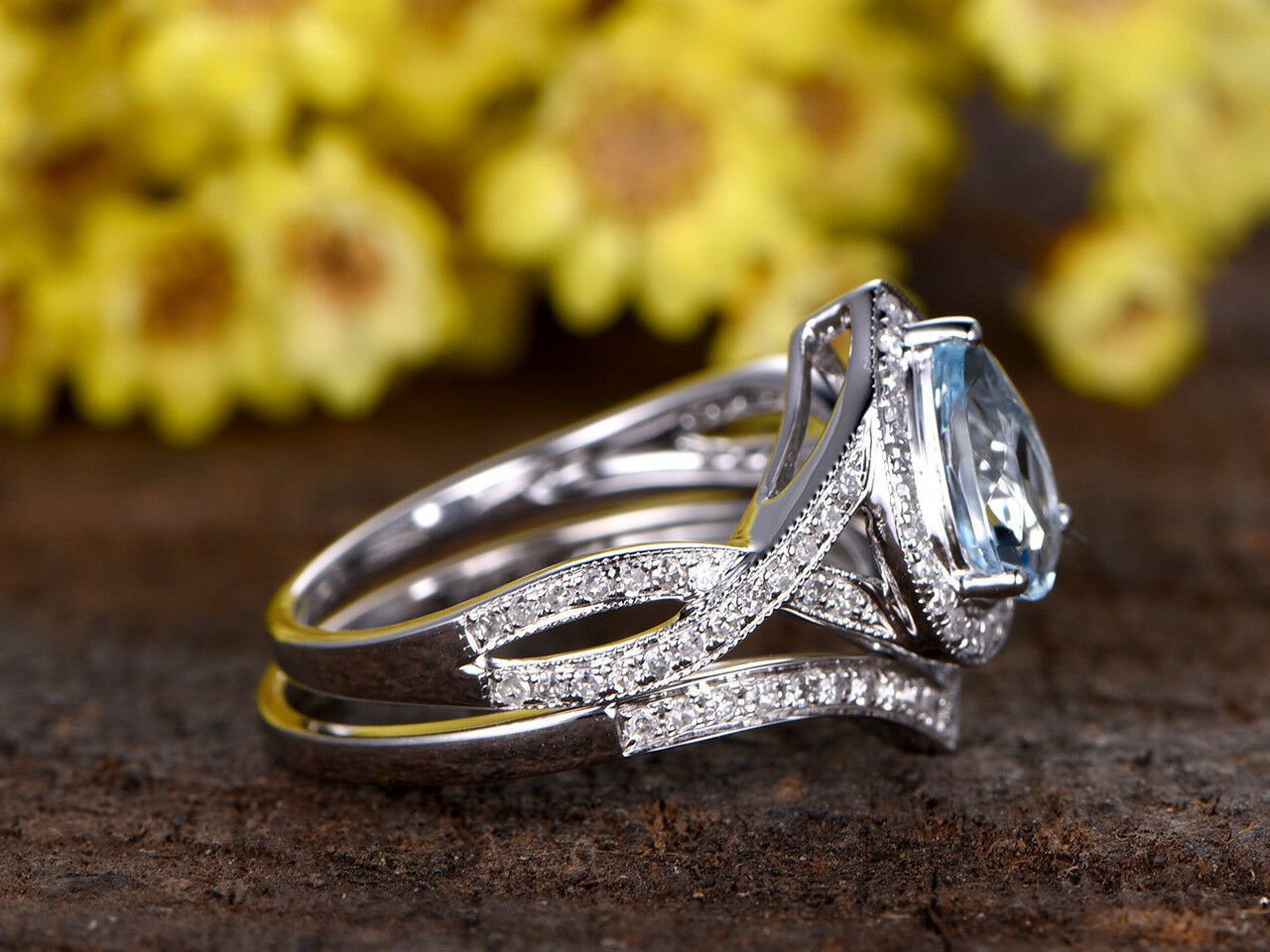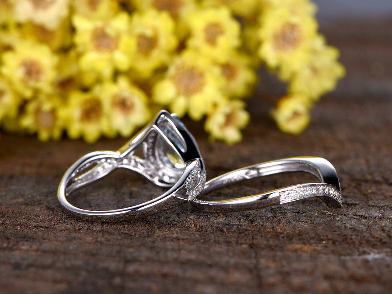 1ct Pear Cut Blue Topaz Bridal Set Vintage Infinity Ring 14k White Gold Finish