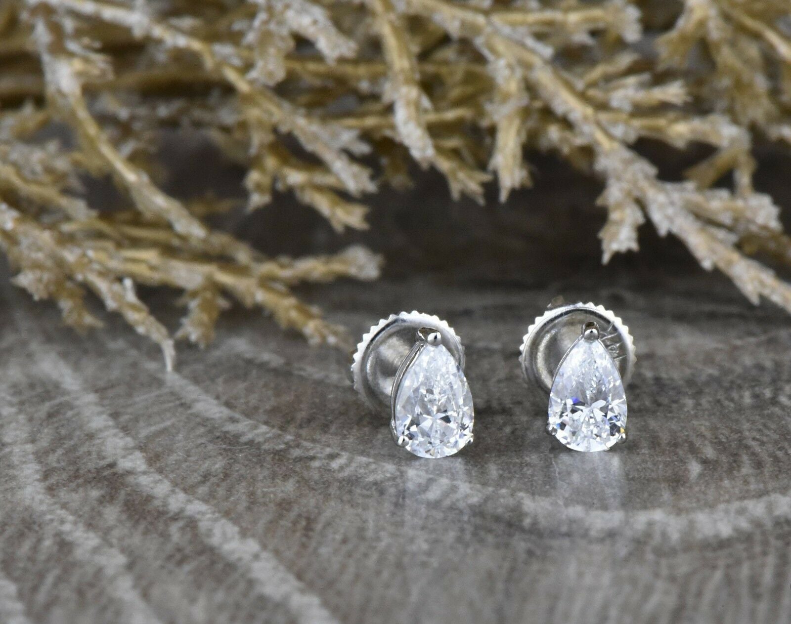 1ct Pear Cut Diamond Engagement Ring 14k White Gold Finish Screw Back Solitaire