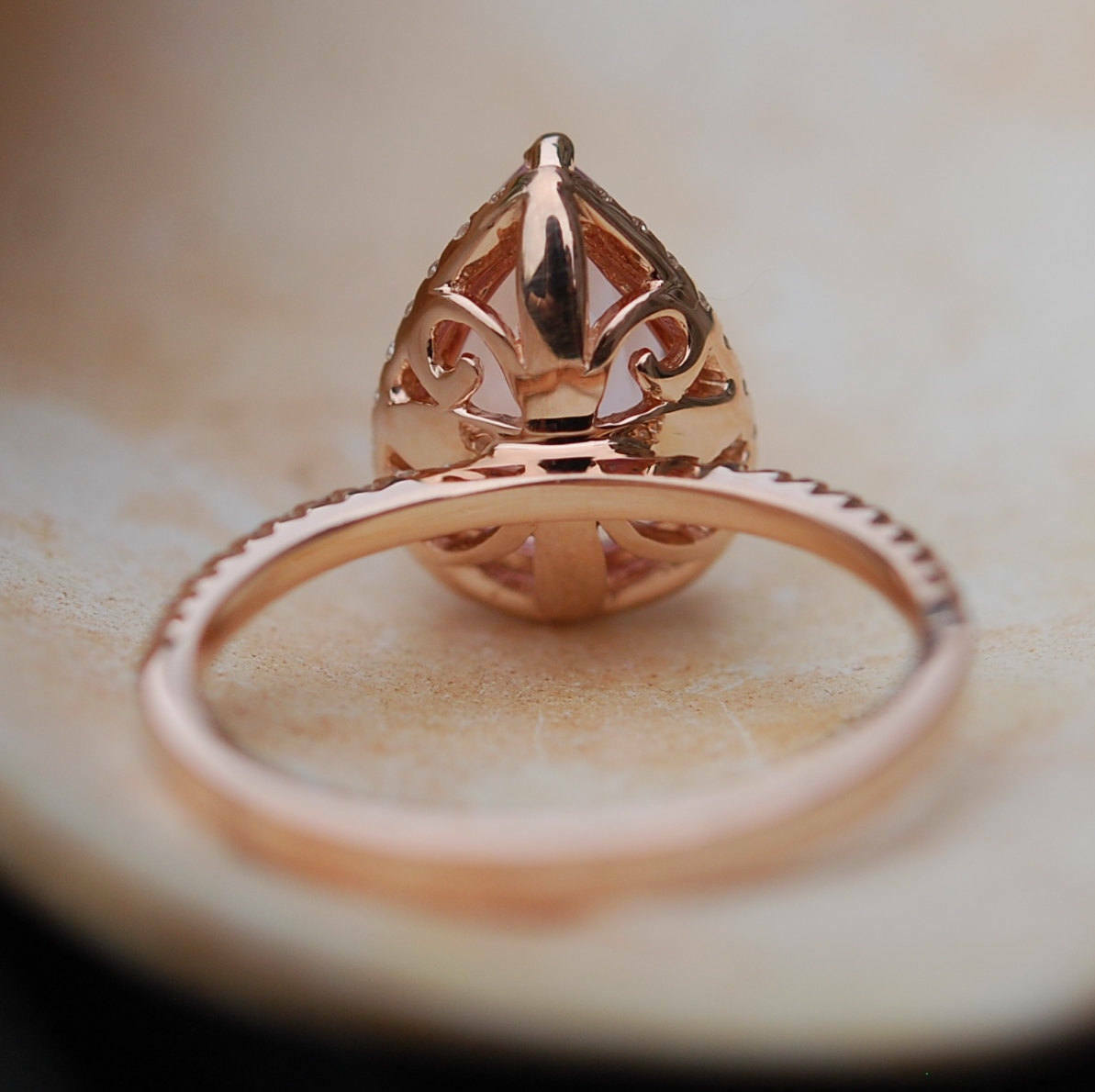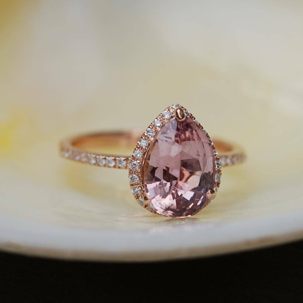 1ct Pear Cut Peach Morganite Halo Filigree Engagement Ring 14k Rose Gold Finish