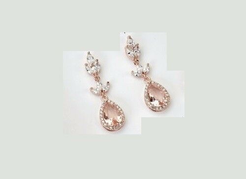 1ct Pear Cut Peach Morganite Tear Drop Stud Earrings Women 14k Rose Gold Finish