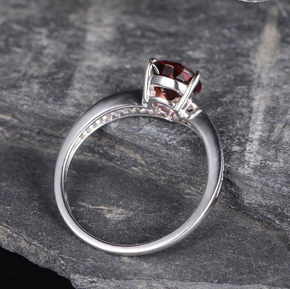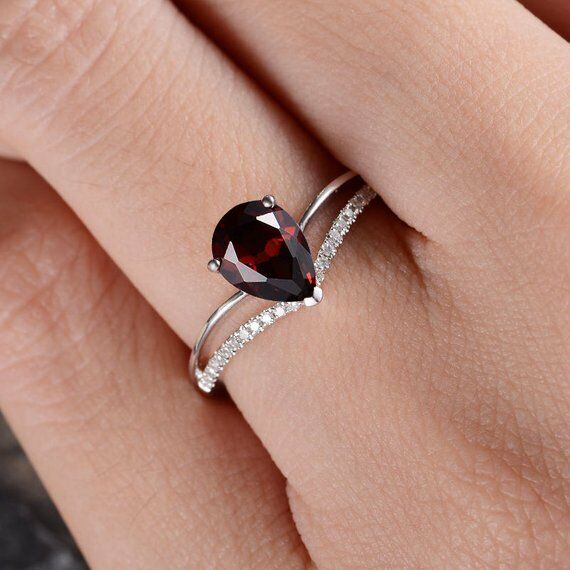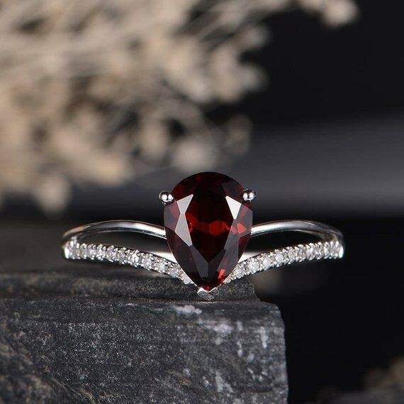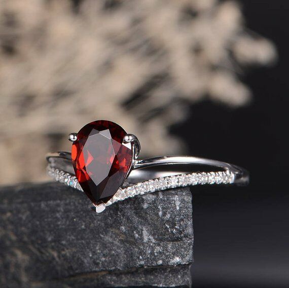 1ct Pear Cut Red Garnet Diamonds Tear Drop Engagement Ring 14k White Gold Finish