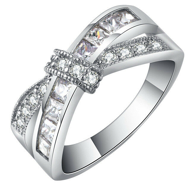 1ct Princess Cut Bow Knot Unique Women Wedding Band Ring 14k White Gold Finish