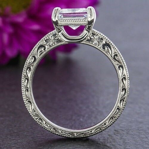 1ct Princess Cut Diamond Antique Solitaire Engagement Ring 14k White Gold Finish