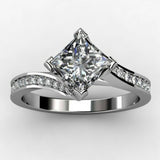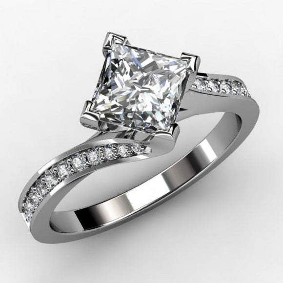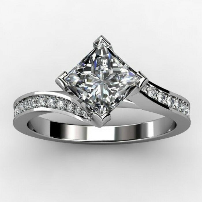 1ct Princess Cut Diamond Bridal Solitaire Engagement Ring 14k White Gold Finish
