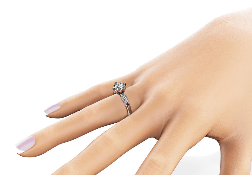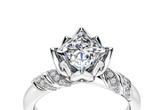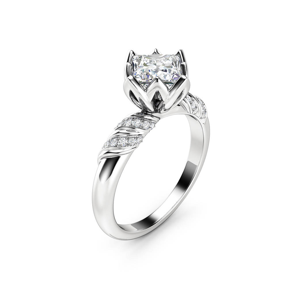 1ct Princess Cut Diamond Engagement Ring 14k White Gold Over Lotus Flower Design