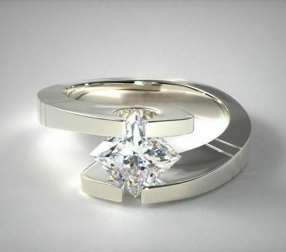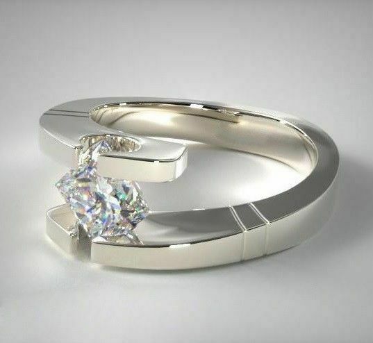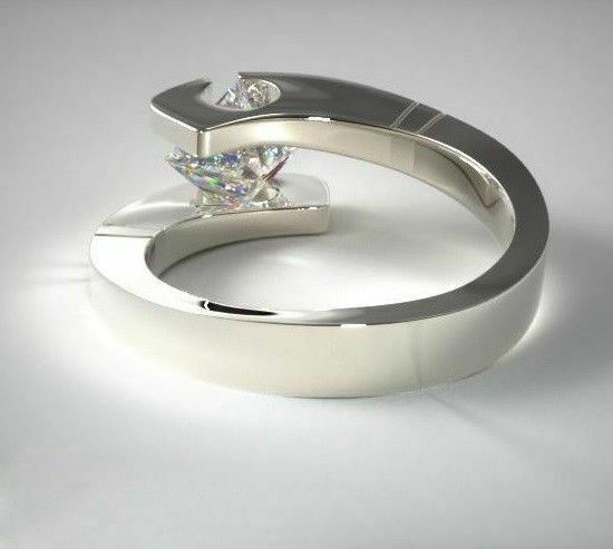 1Ct Princess Cut Diamond Tension Set Trendy Solitaire Ring 14K White Gold Finish