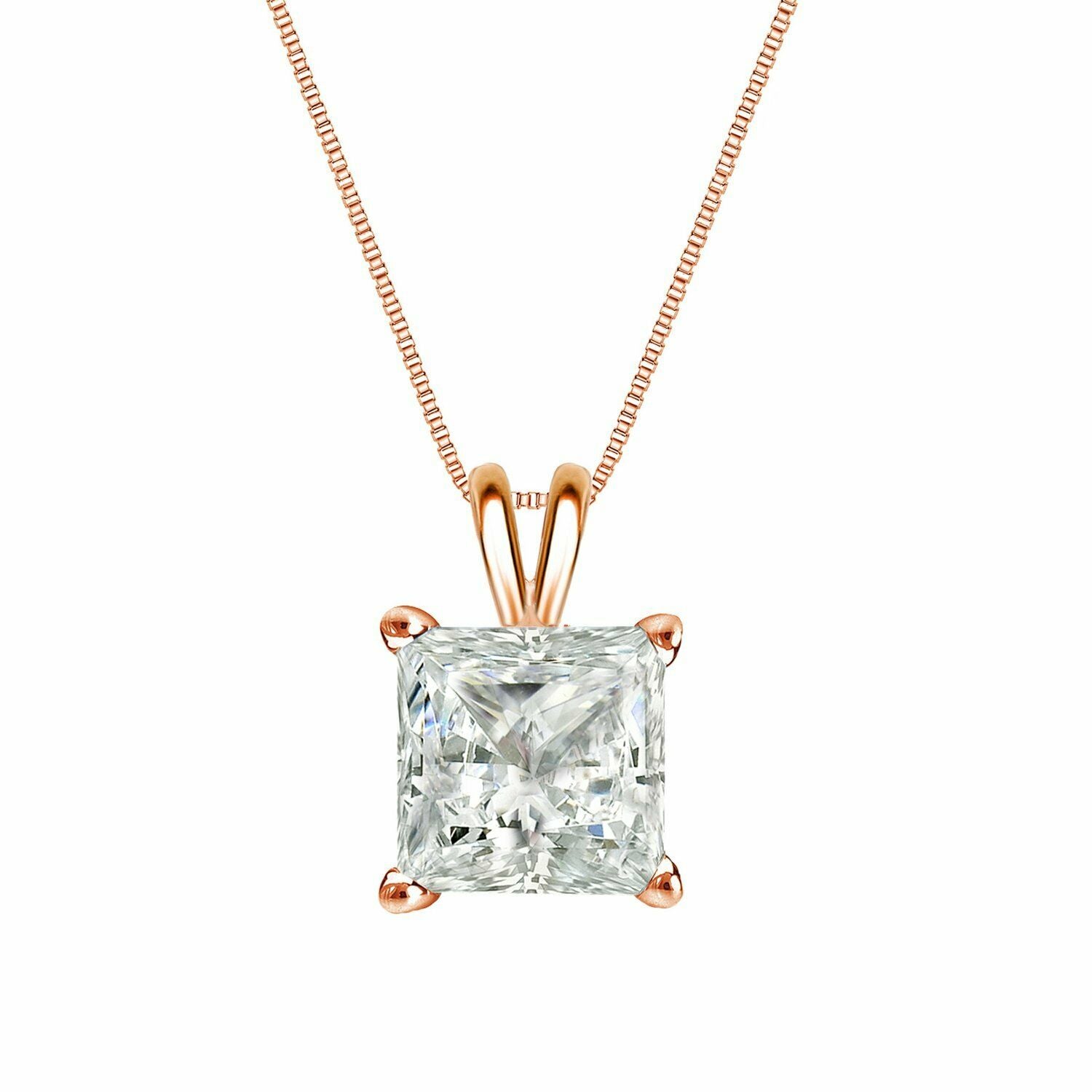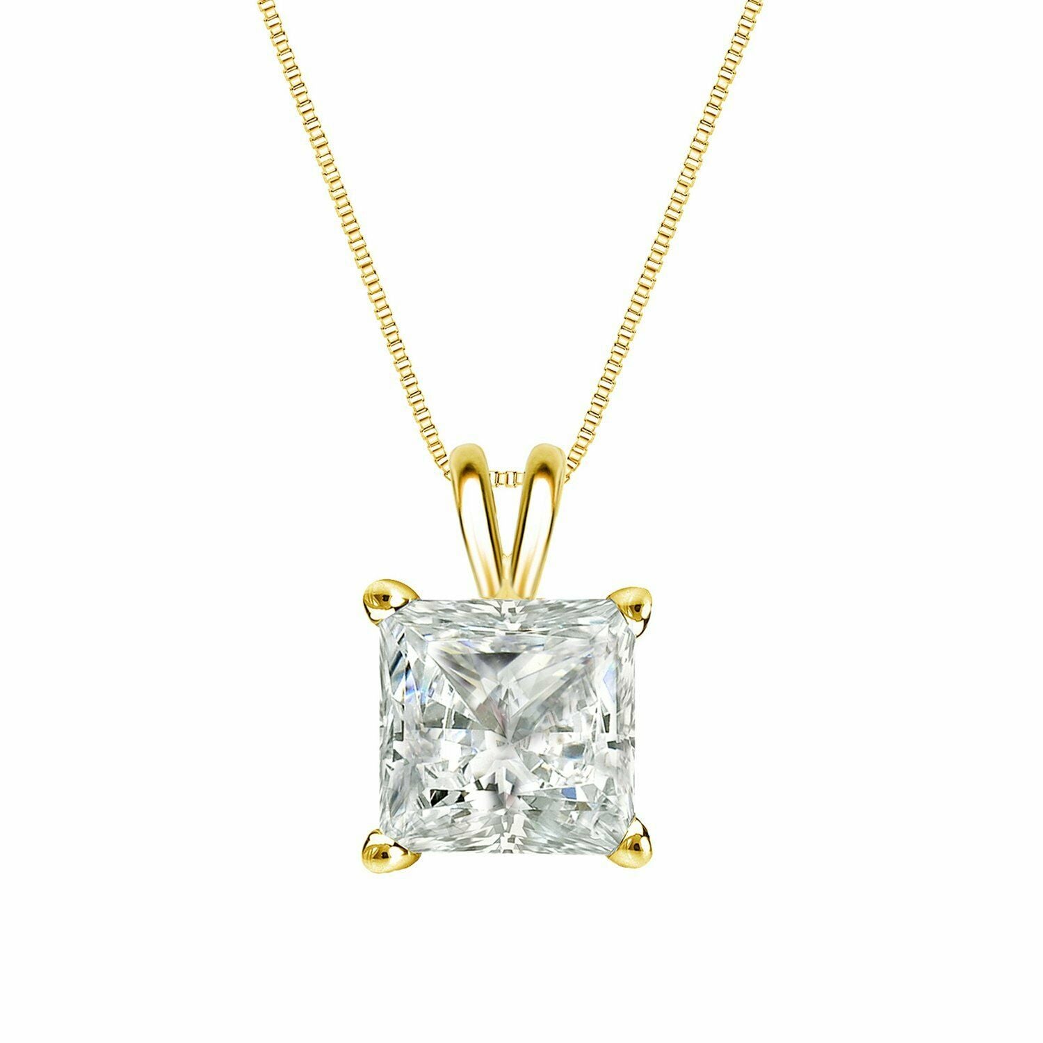 1ct Princess Cut DVVS1 Diamond Solitaire Pendant 18k White Gold Finish NO CHAIN