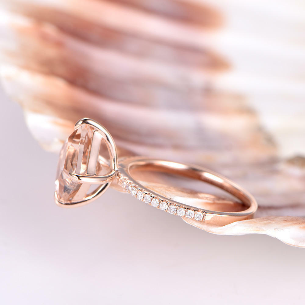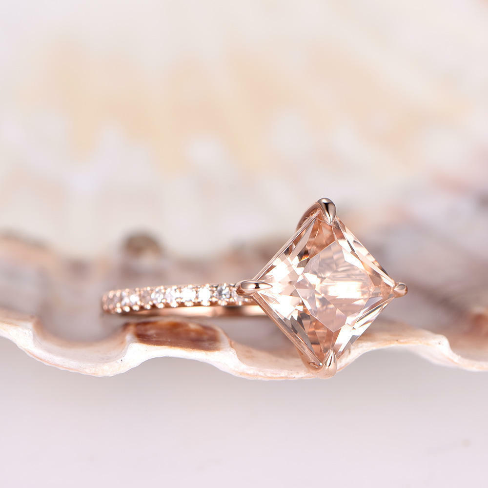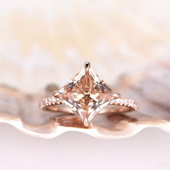 1ct Princess Cut Peach Morganite Solitaire Engagement Ring 14k Rose Gold Finish