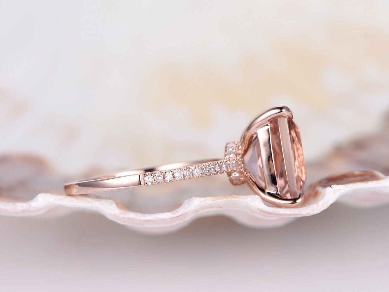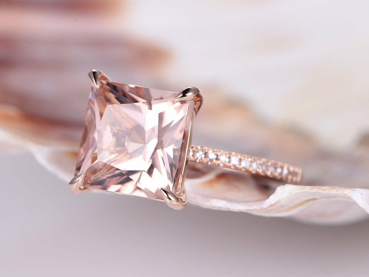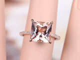 1ct Princess Cut Peach Morganite Solitaire Engagement Ring 18k Rose Gold Finish