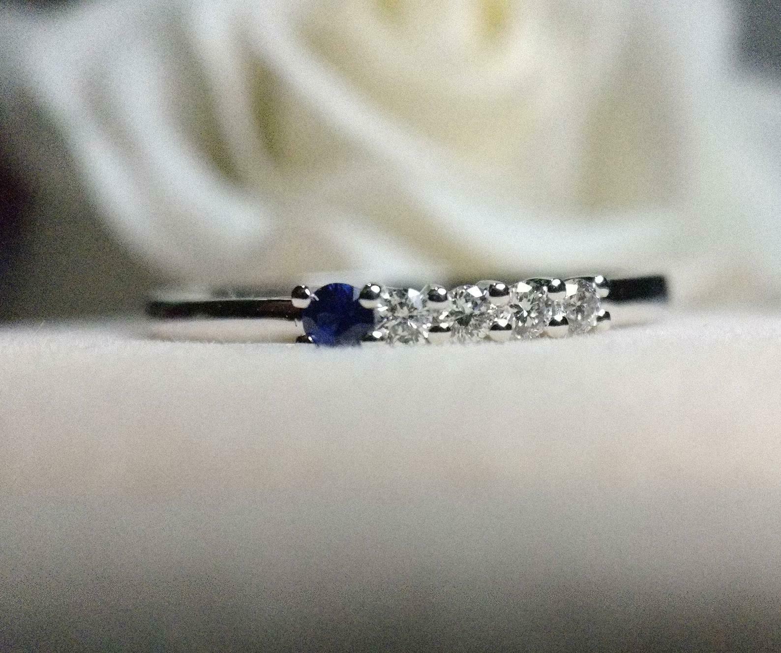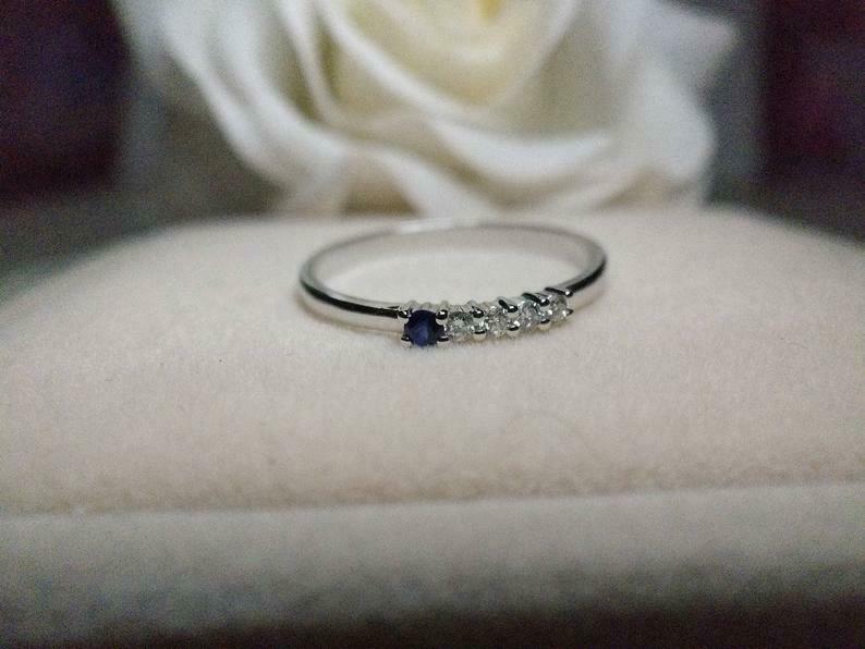 1ct Round Cut Blue Sapphire Engagement Ring 5 Stone Minimalist 14k White Gold Finish