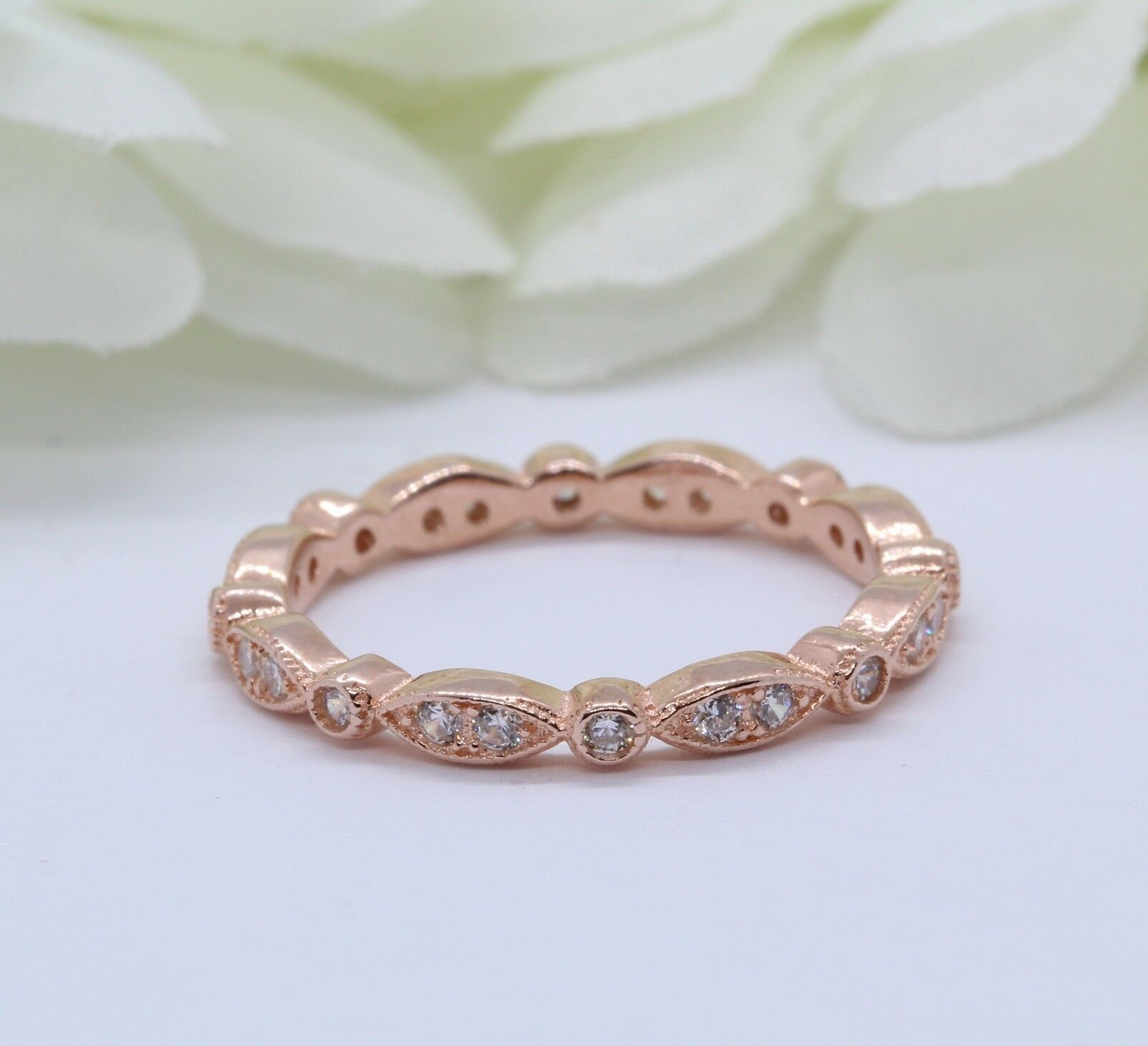 1Ct Round Brilliant Cut Diamond Stackable Wedding Band 14K Rose Gold Finish