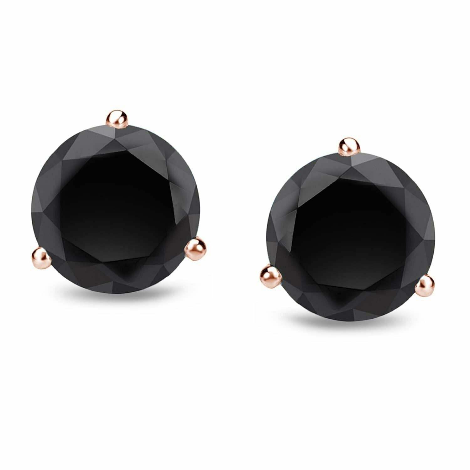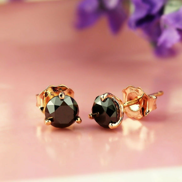 1Ct Round Cut Black Diamond Classic Solitaire Stud Earrings 14K Rose Gold Finish