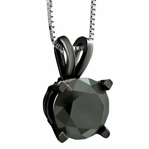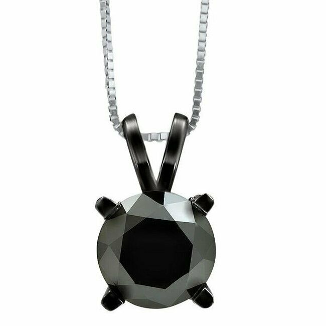 1ct Round Cut Black Diamond Solitaire Pendant 14k Black Gold Finish NO CHAIN