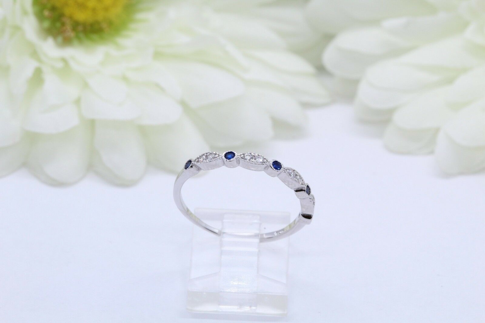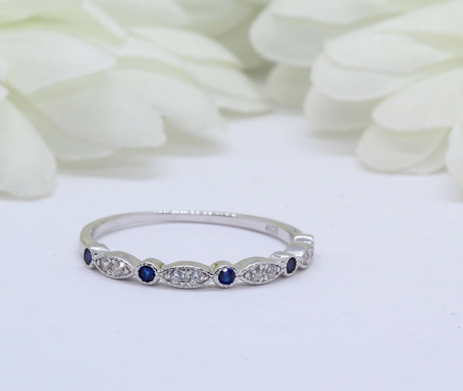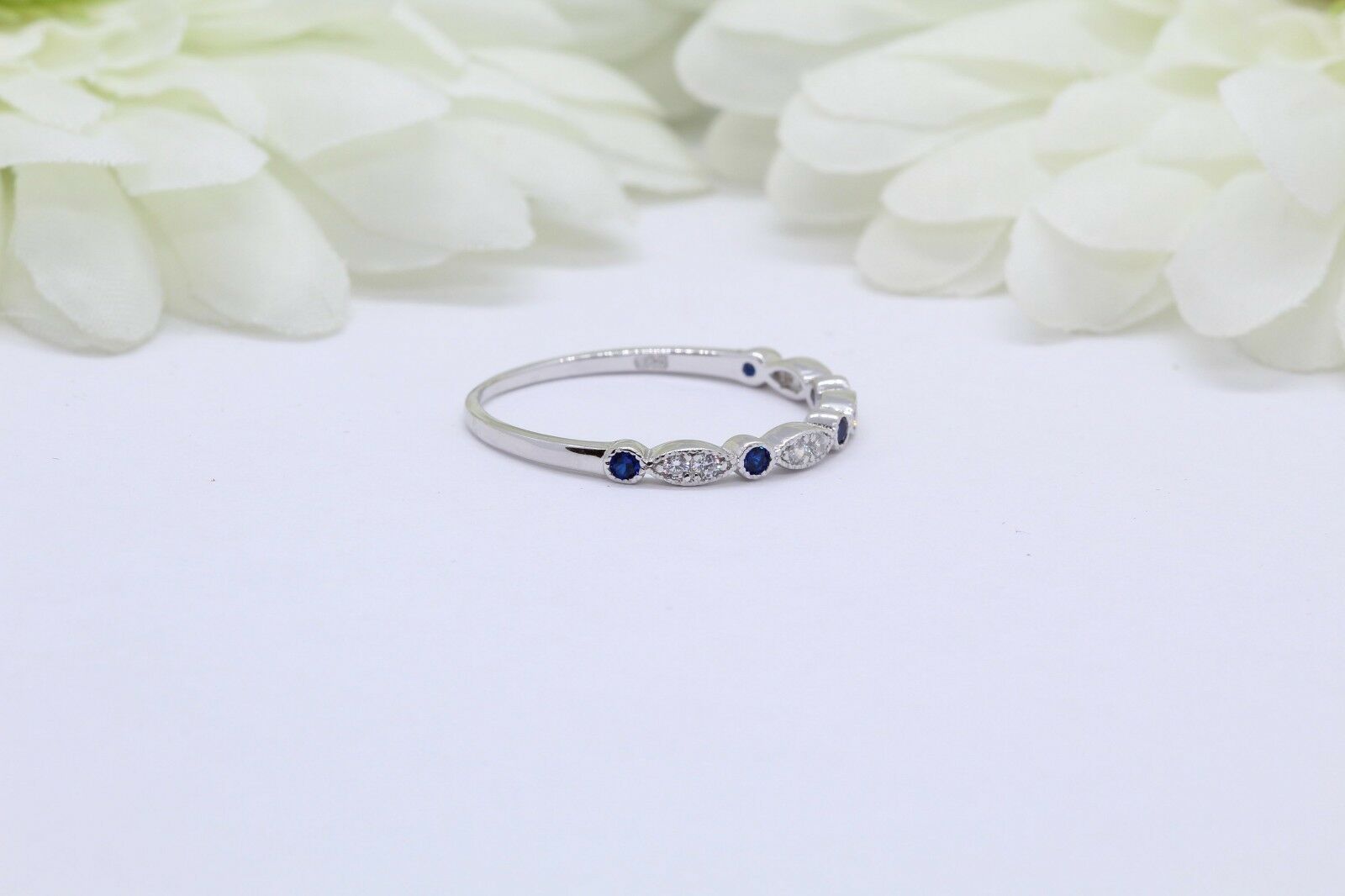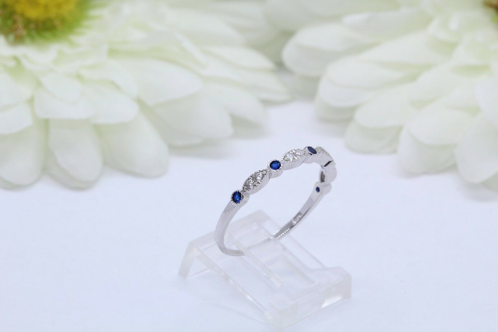 1Ct Round Cut Blue Sapphire Diamond Stackable Wedding Band 14K White Gold Finish