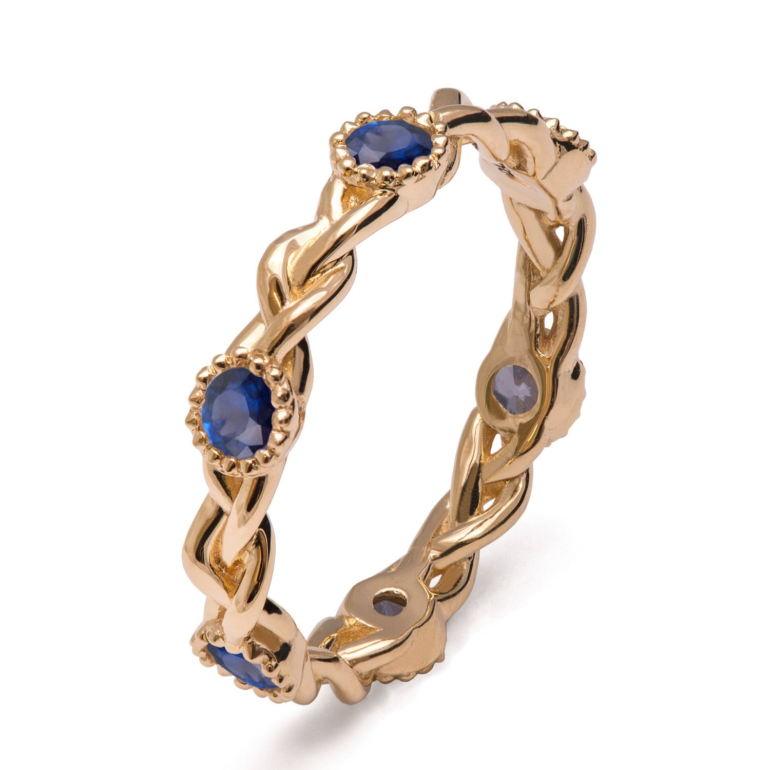 1ct Round Cut Blue Sapphire Engagement Ring 14k Rose Gold Finish Braided Design