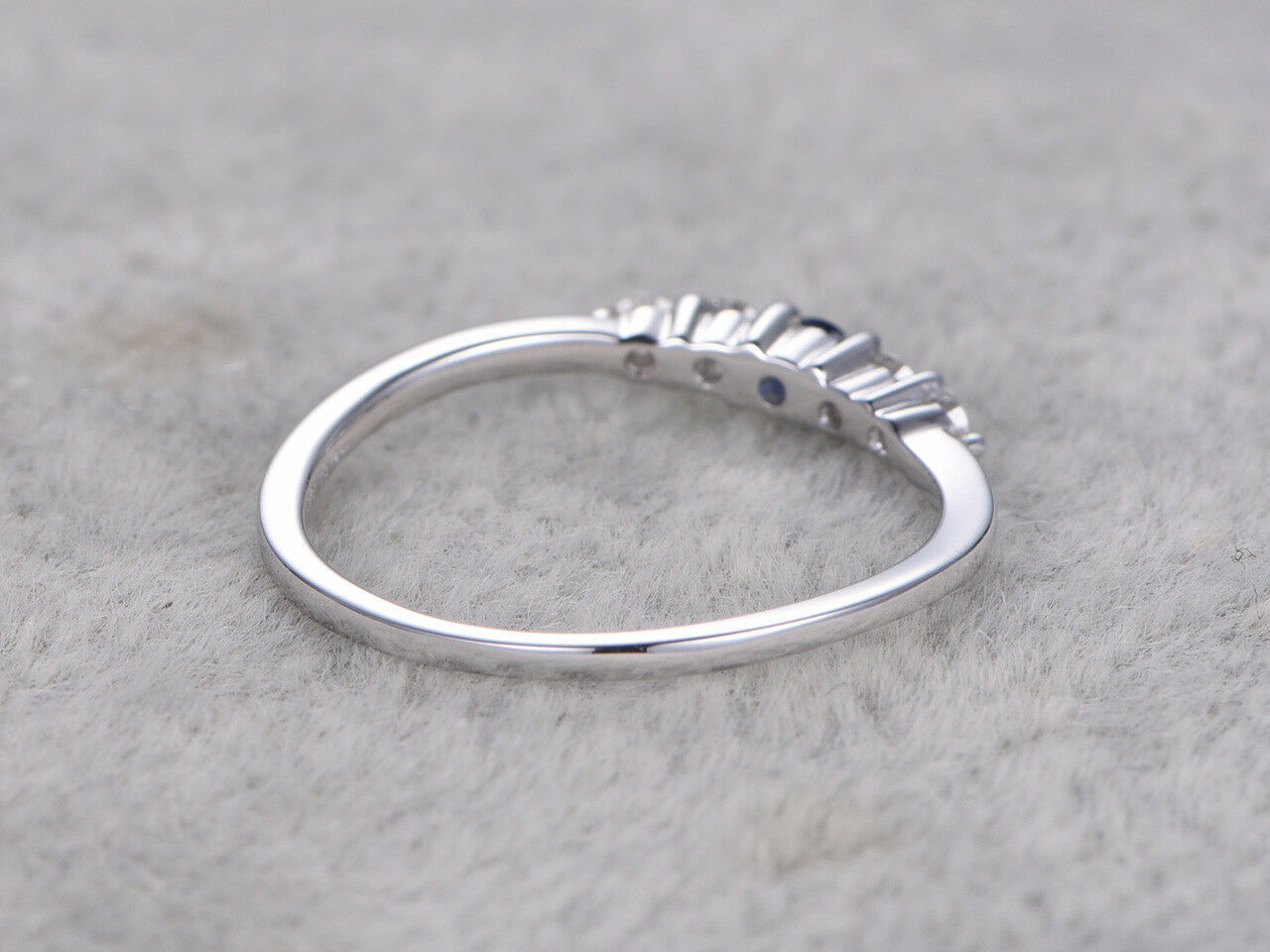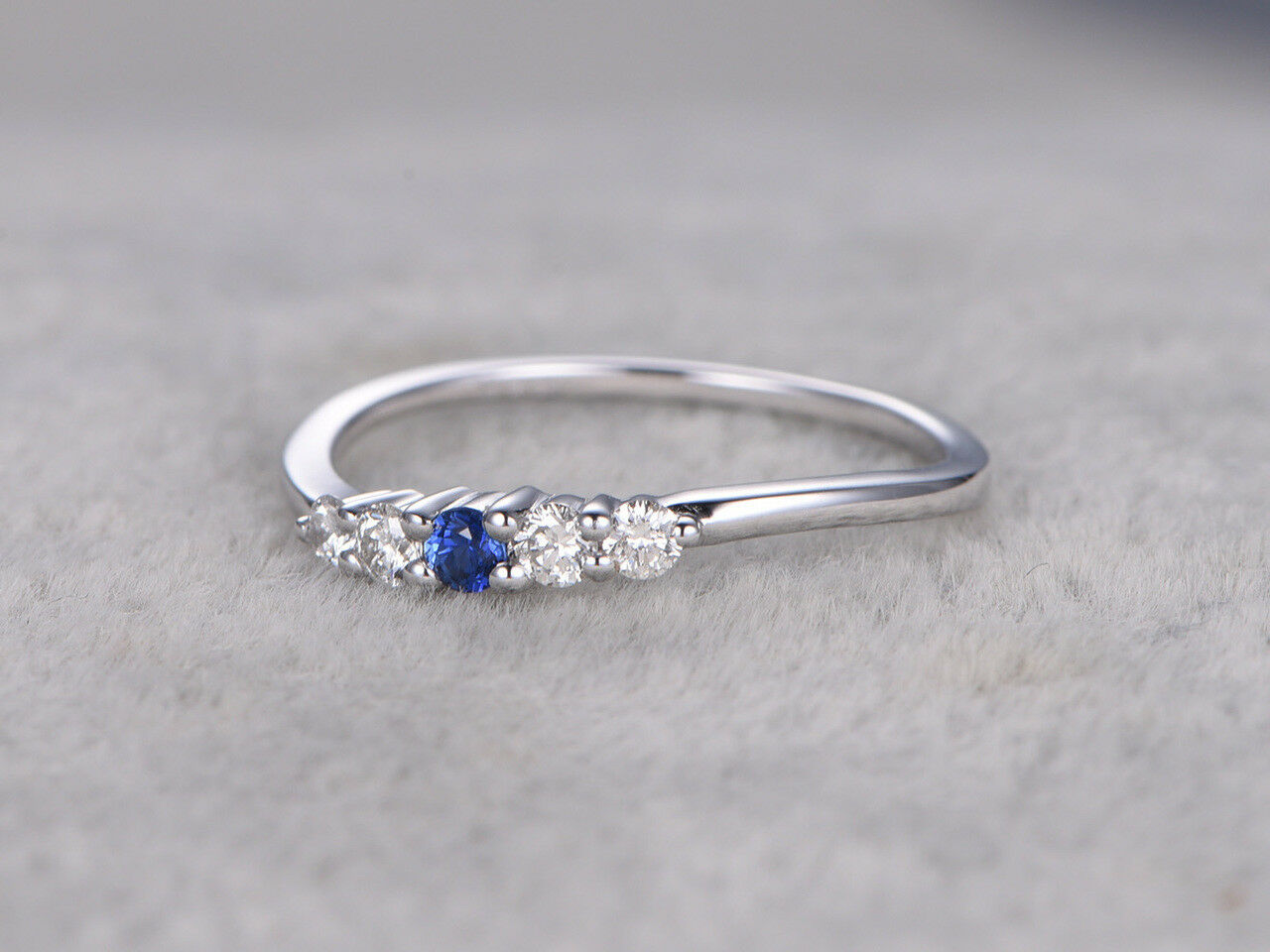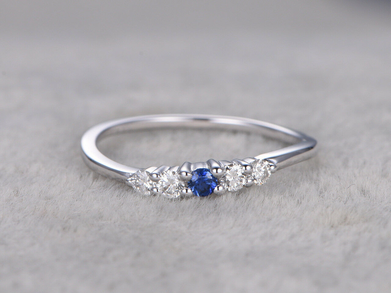 1ct Round Cut Blue Sapphire Engagement Ring 14k White Gold Finish Five Stone