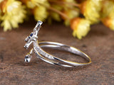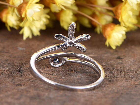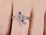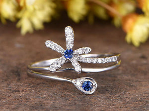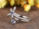 1ct Round Cut Blue Sapphire Engagement Ring 14k White Gold Finish Floral Bypass