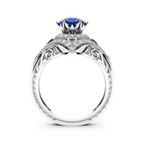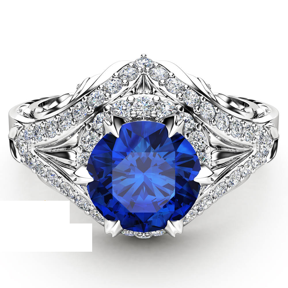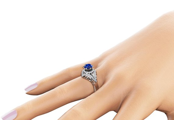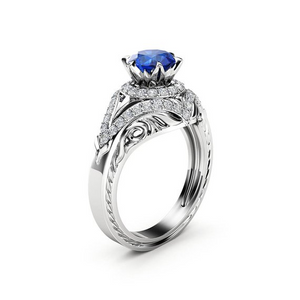 1ct Round Cut Blue Sapphire Engagement Ring 14k White Gold Finish Halo Flower