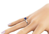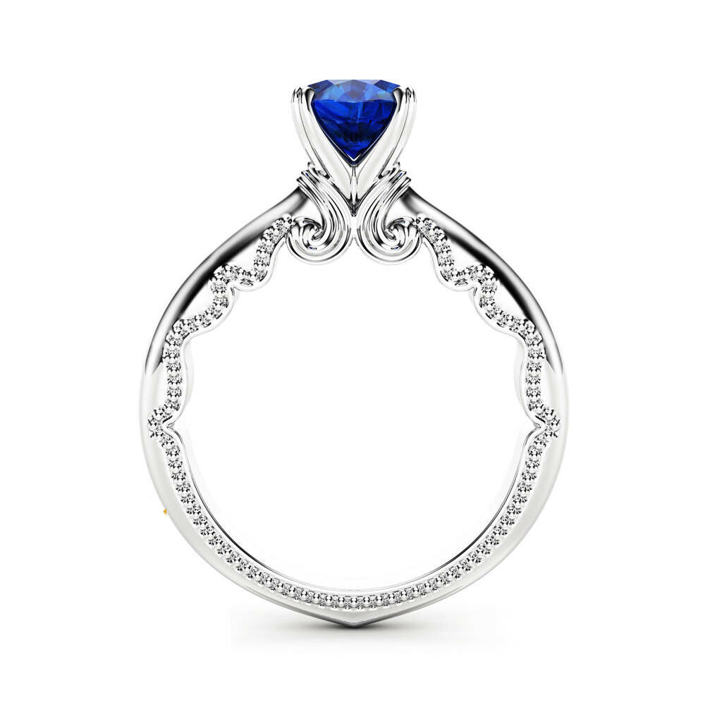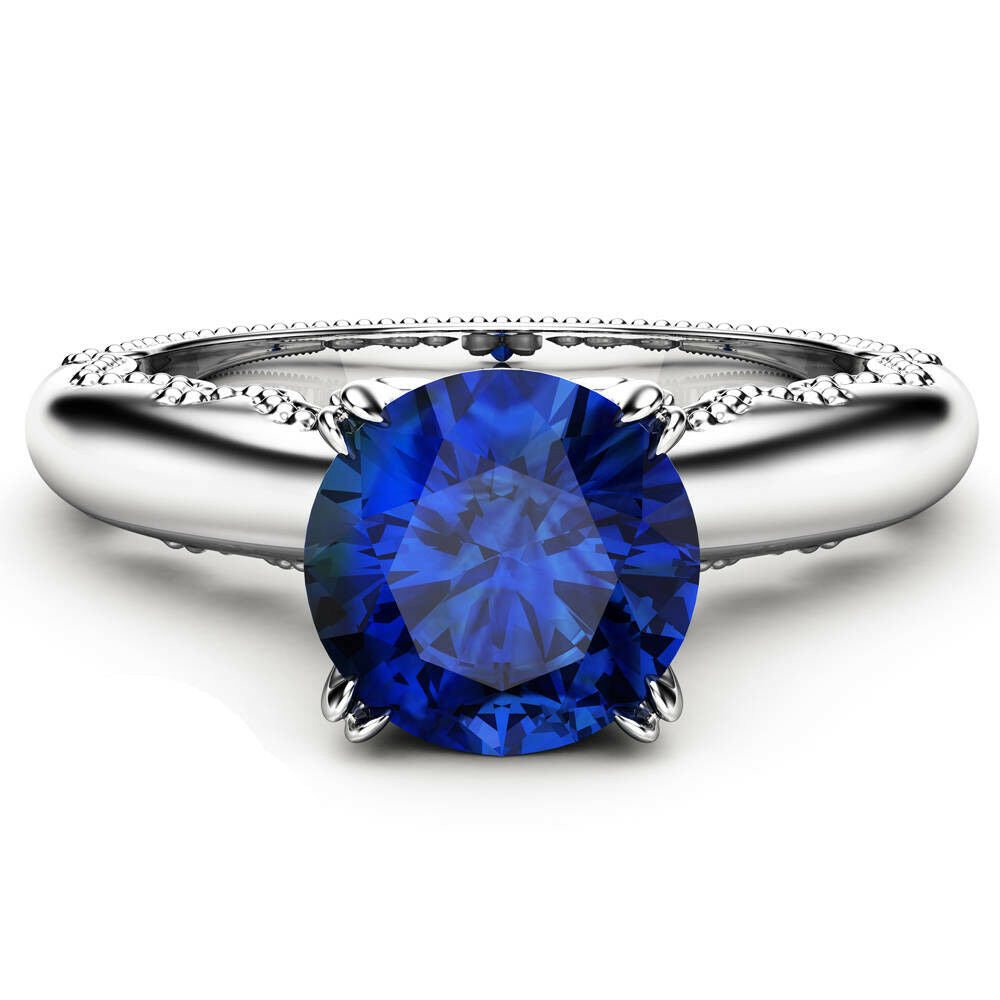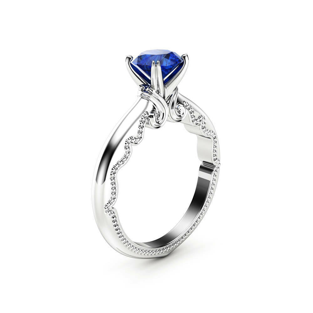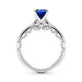 1ct Round Cut Blue Sapphire Engagement Ring 14k White Gold Over Antique Milgrain