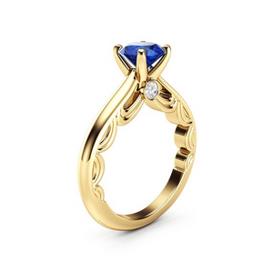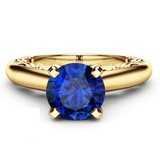 1ct Round Cut Blue Sapphire Engagement Ring 14k Yellow Gold Over Promise Wedding