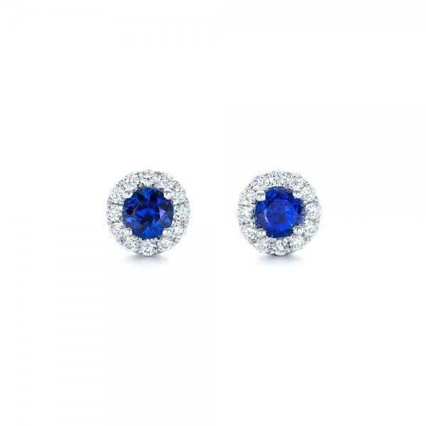 1ct Round Cut Blue Sapphire Halo Women Stud Earrings 14k White Gold Finish