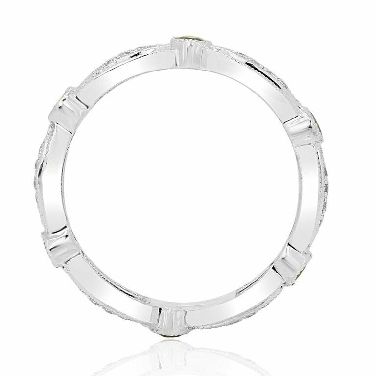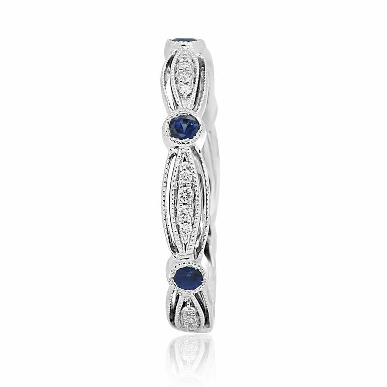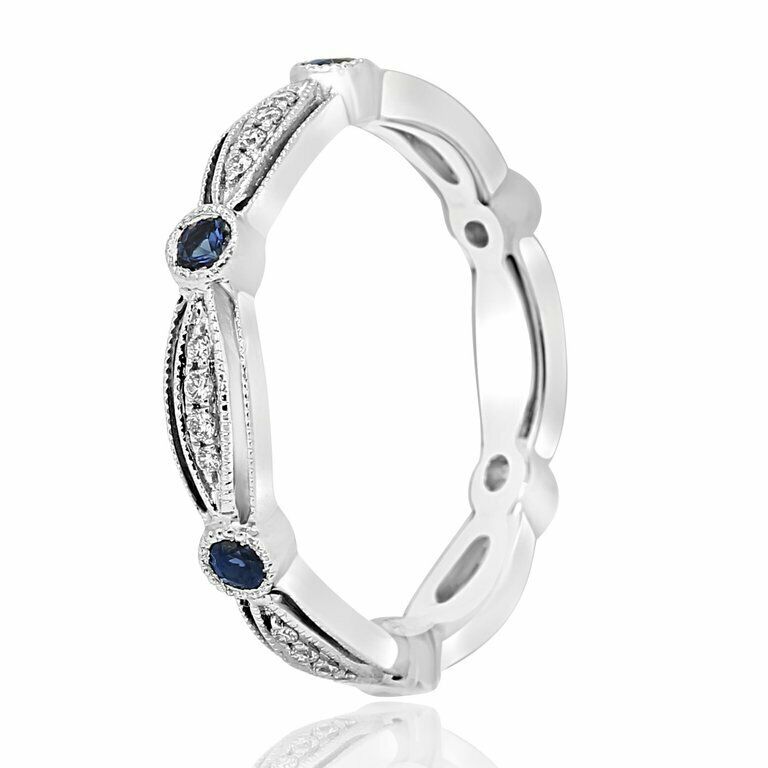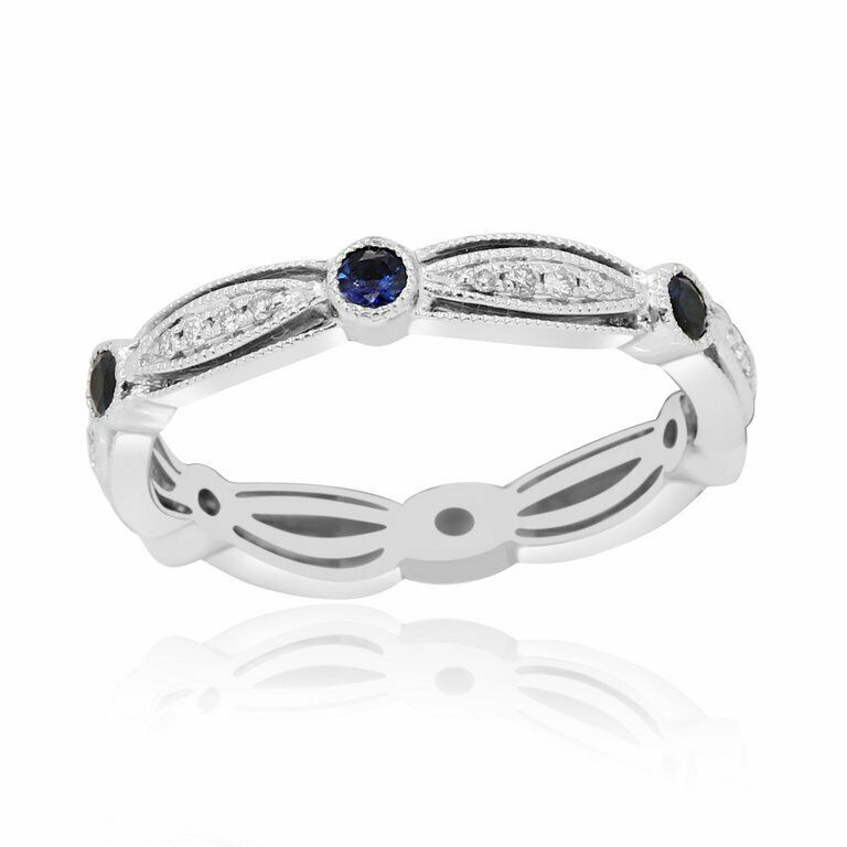 1ct Round Cut Blue Sapphire Milgrain Vintage Eternity Band 14k White Gold Finish