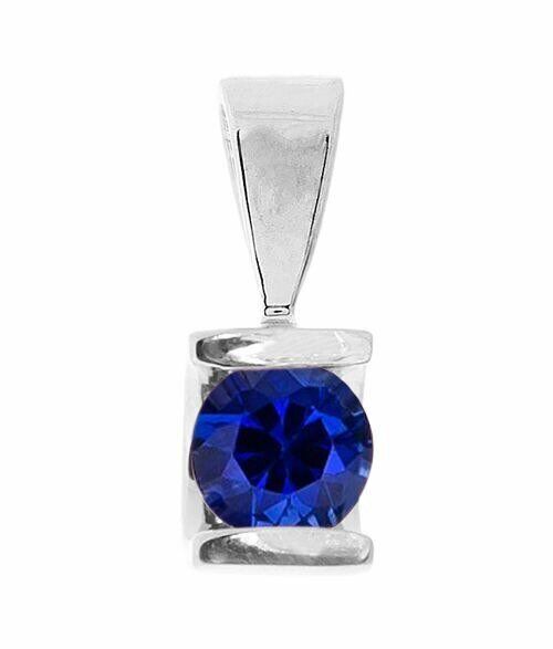 1ct Round Cut Blue Sapphire Unique Design Pendant 14k White Gold Finish NO CHAIN