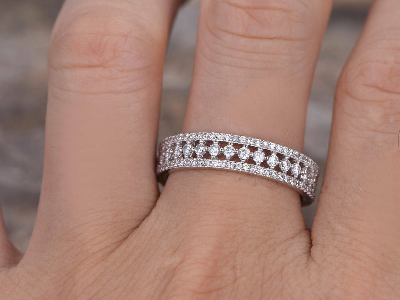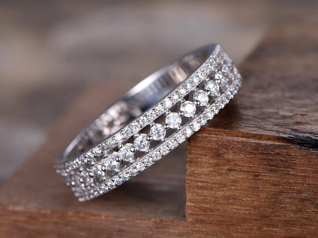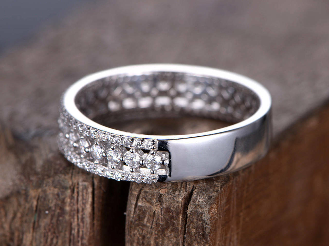 1ct Round Cut Diamond 3 Row Infinity Eternity Wedding Band 14k White Gold Finish