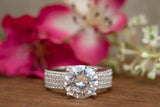 1ct Round Cut Diamond 4Row Accent Solitaire Engagement Ring 14k WhiteGold Finish