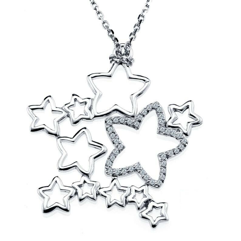 1ct Round Cut Diamond All Stars Encrusted Pendant with Chain 14k White Gold Over
