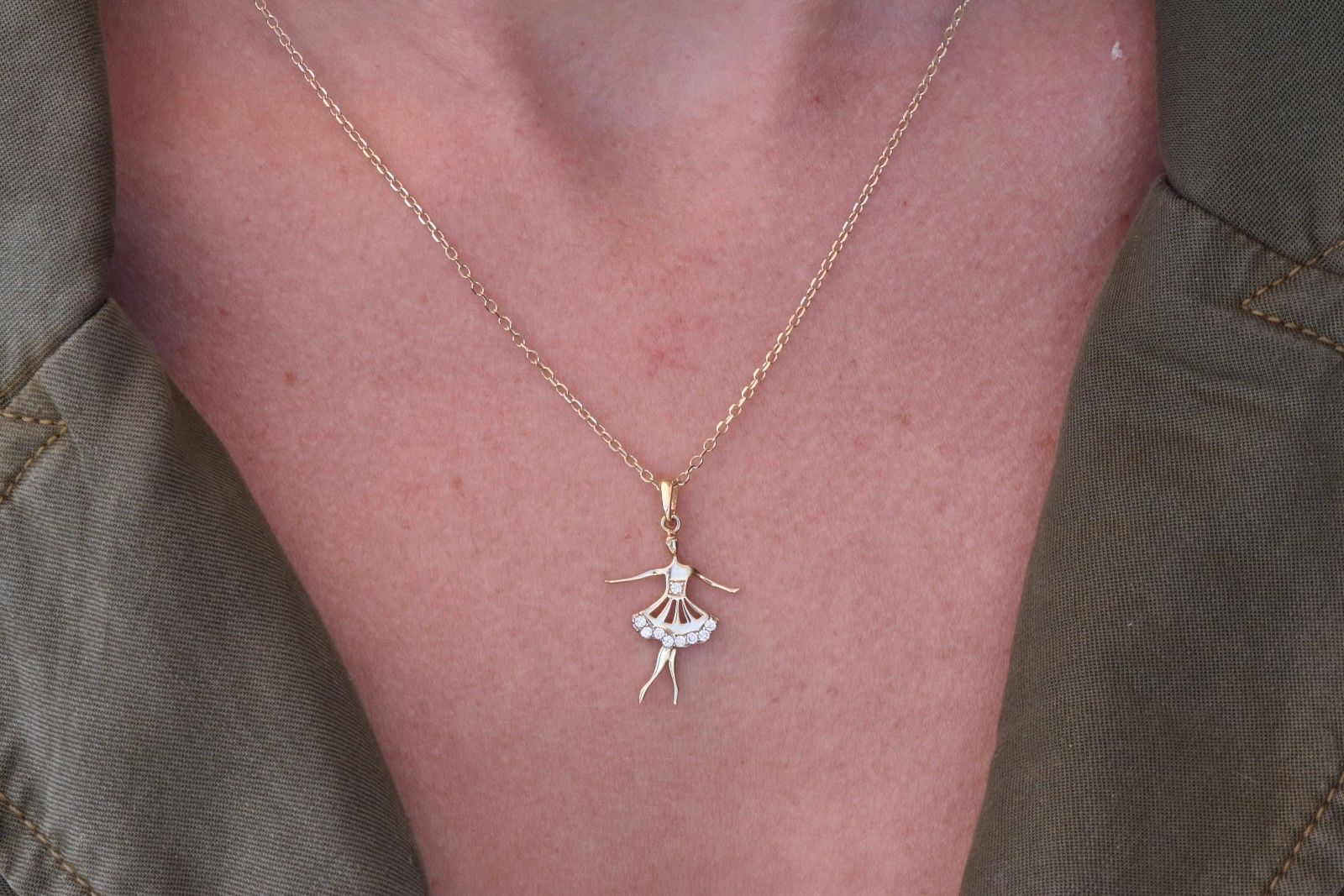 1ct Round Cut Diamond Ballerina Charm Pendant 14k Yellow Gold Finish NO CHAIN
