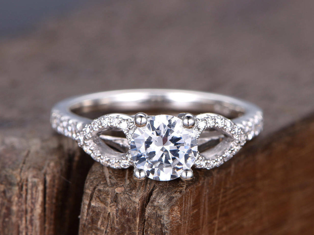 1ct Round Cut Diamond Drop Design Solitaire Engagement Ring 14k WhiteGold Finish