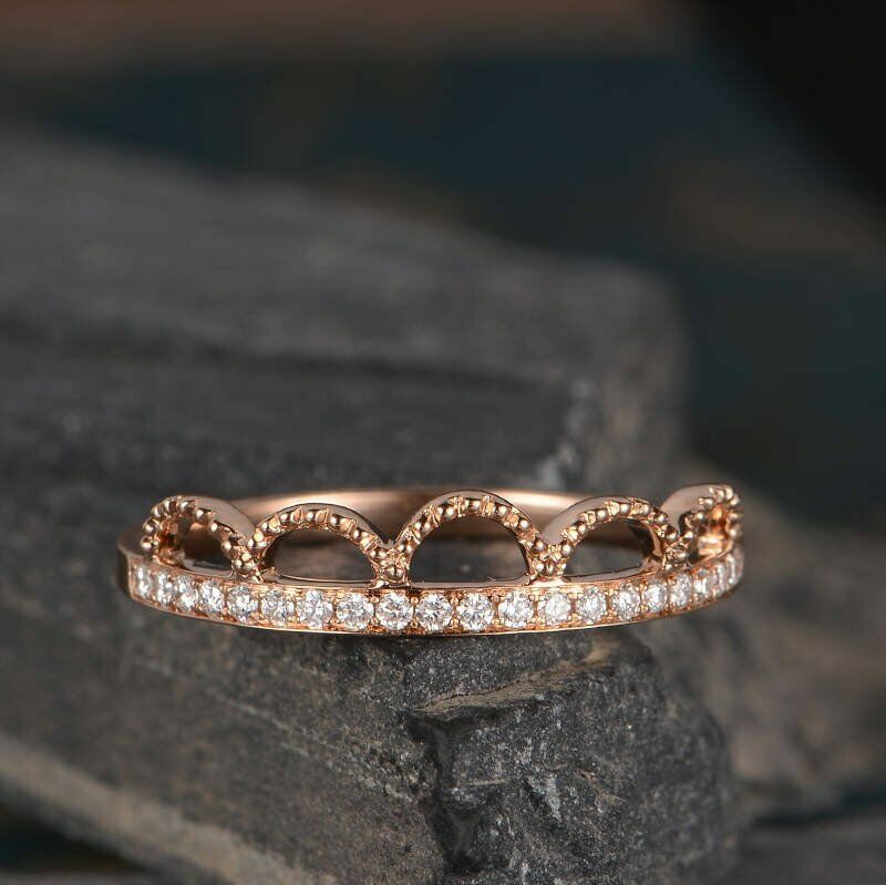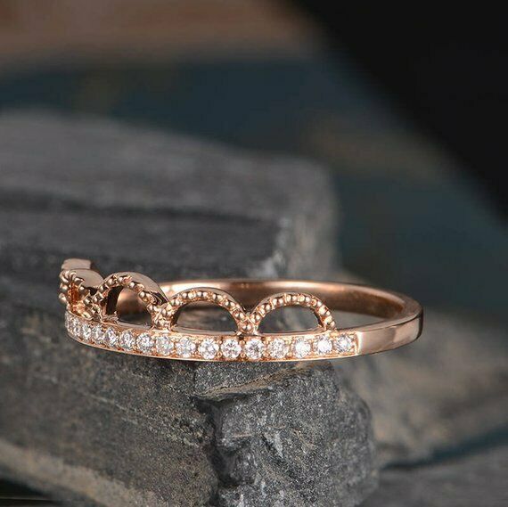 1ct Round Cut Diamond Engagement Ring 14k RoseGold Finish Milgrain Unique Design