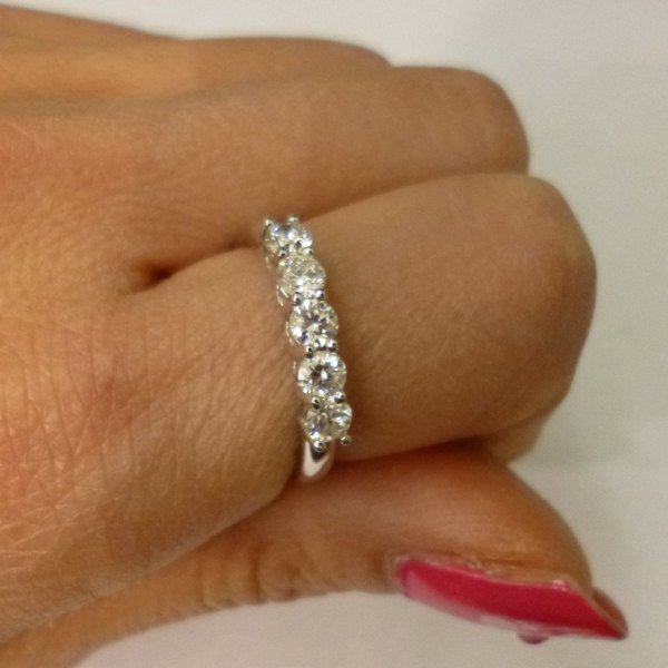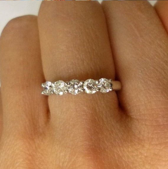1ct Round Cut Diamond Engagement Ring 14k White Gold Finish Five Stone Solitaire