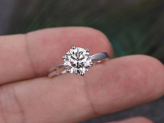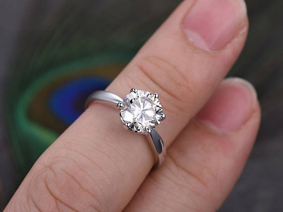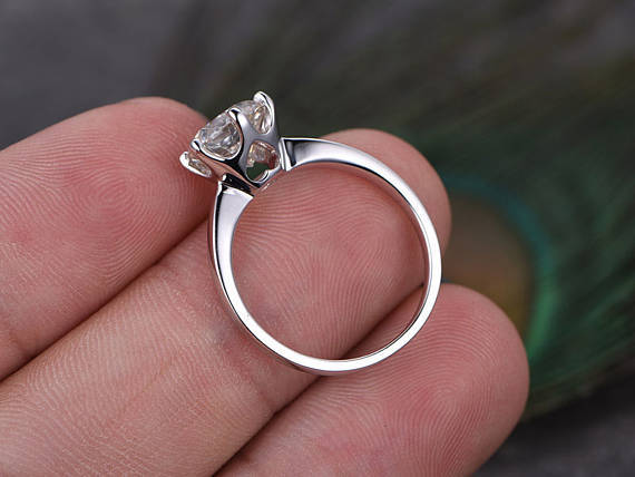 1ct Round Cut Diamond Engagement Ring 14k White Gold Finish Solitaire Wedding
