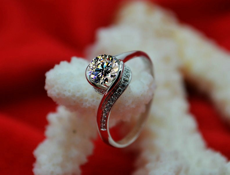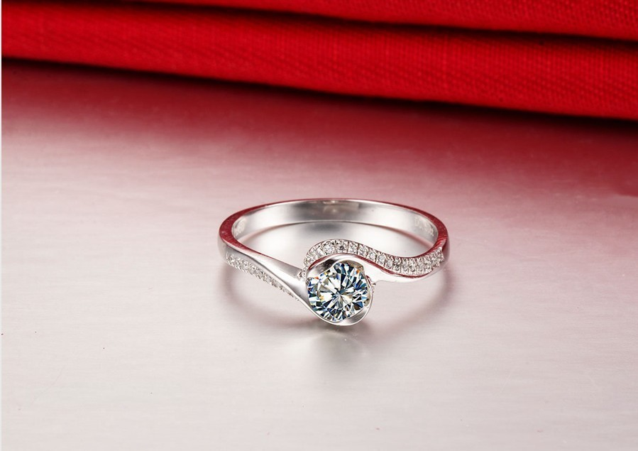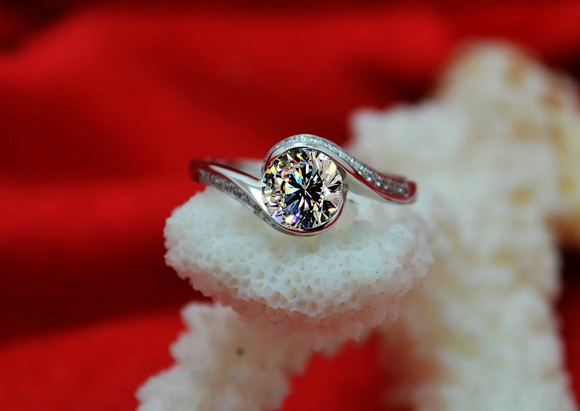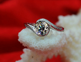 1ct Round Cut Diamond Engagement Ring 14k White Gold Over Swirl Accent Solitaire