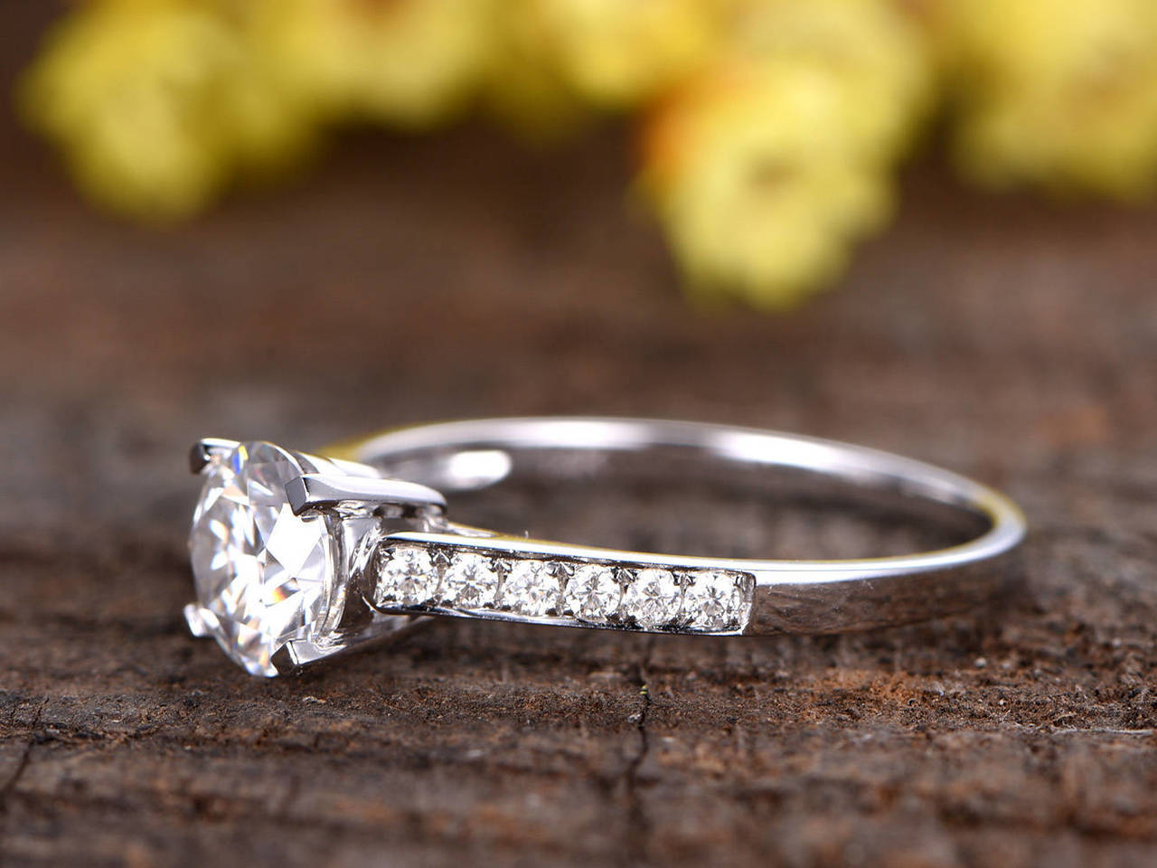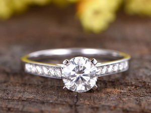 1ct Round Cut Diamond Engagement Ring 14k WhiteGold Finish Half Eternity Wedding