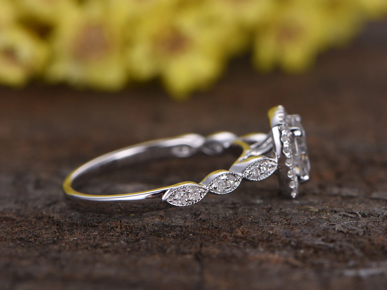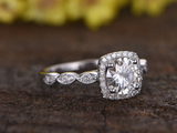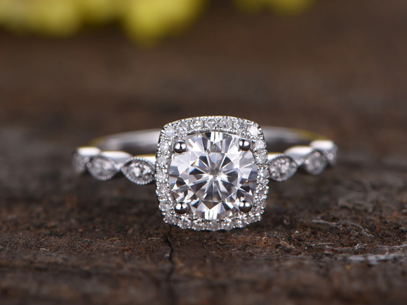1ct Round Cut Diamond Engagement Ring 14k WhiteGold Finish Halo Antique Milgrain