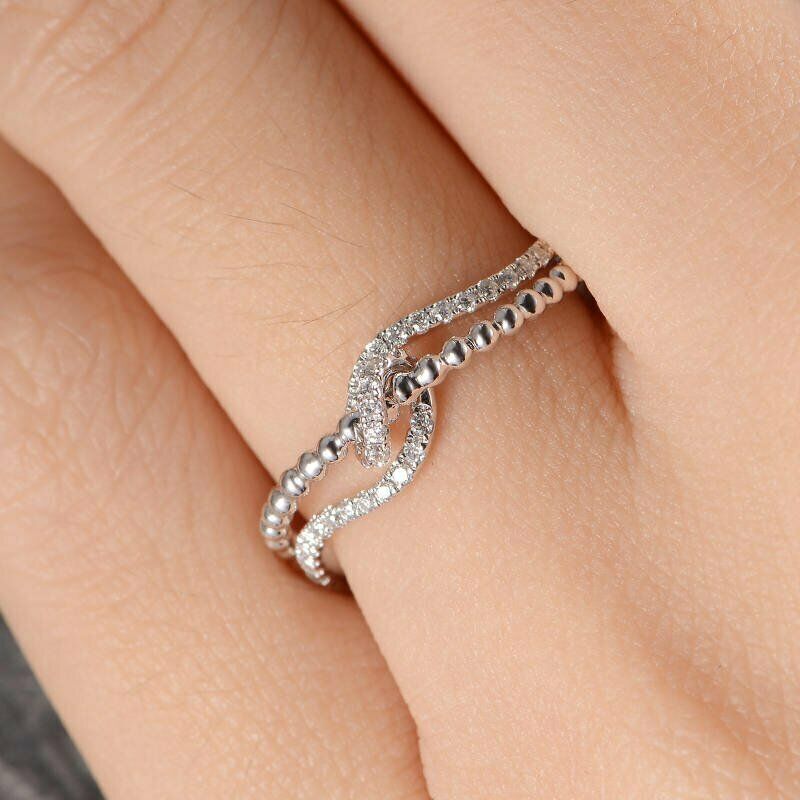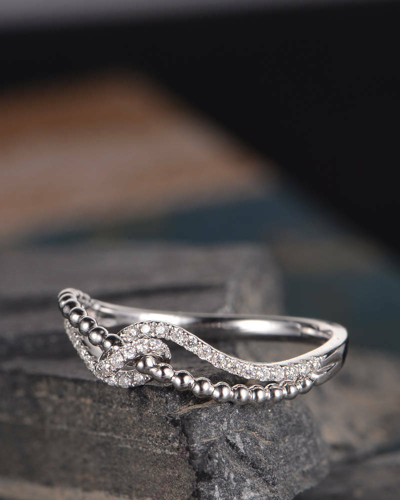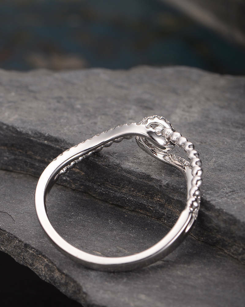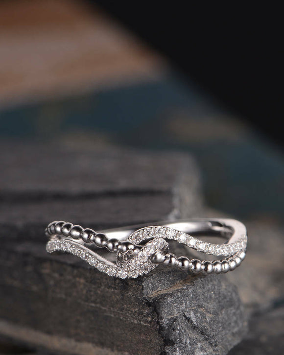 1ct Round Cut Diamond Engagement Ring 14k WhiteGold Finish Love Knot Beaded Wave