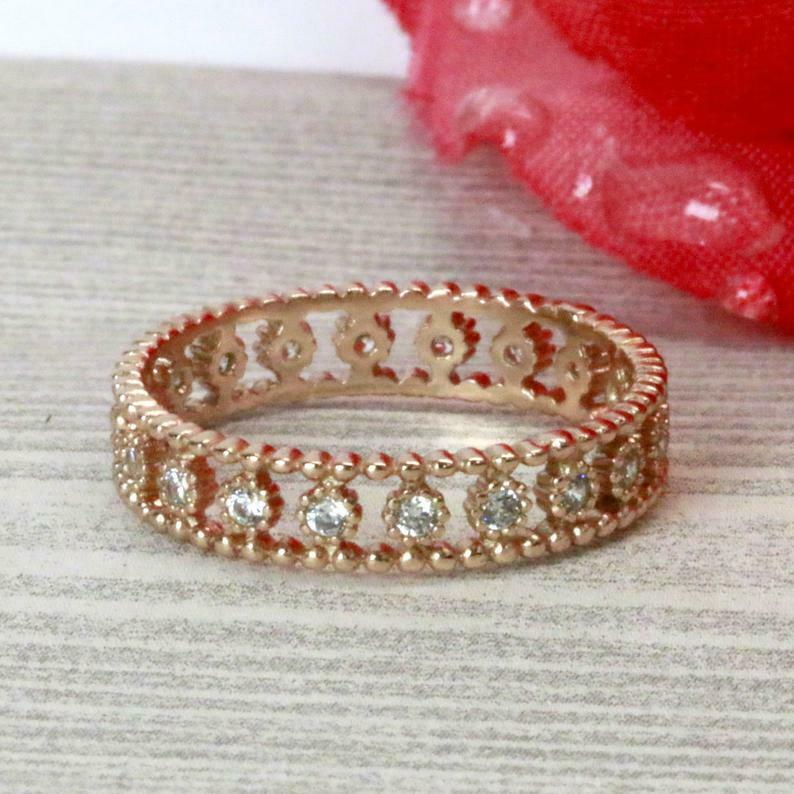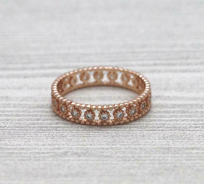 1ct Round Cut Diamond Engagement Ring Vintage Stackable 14k Rose Gold Finish