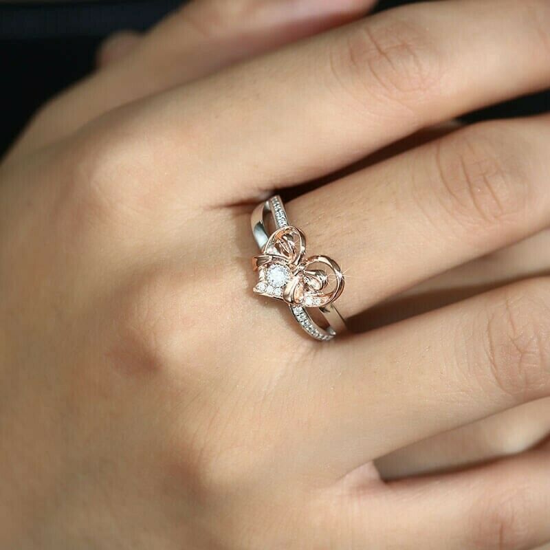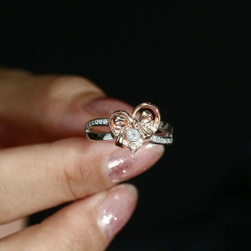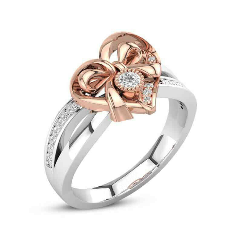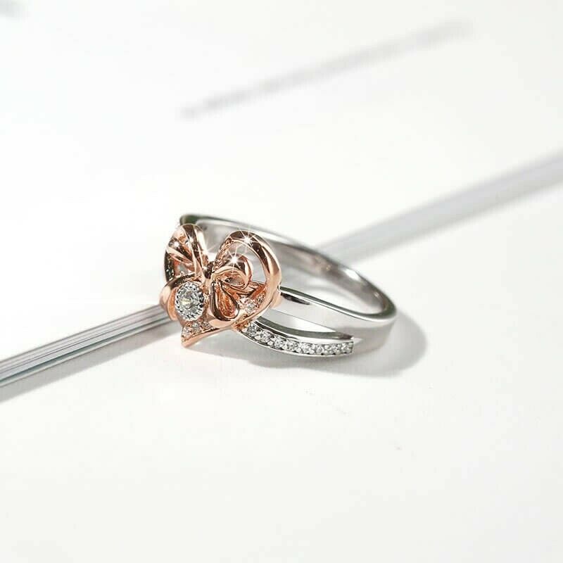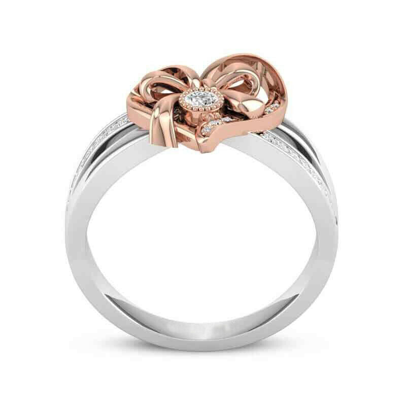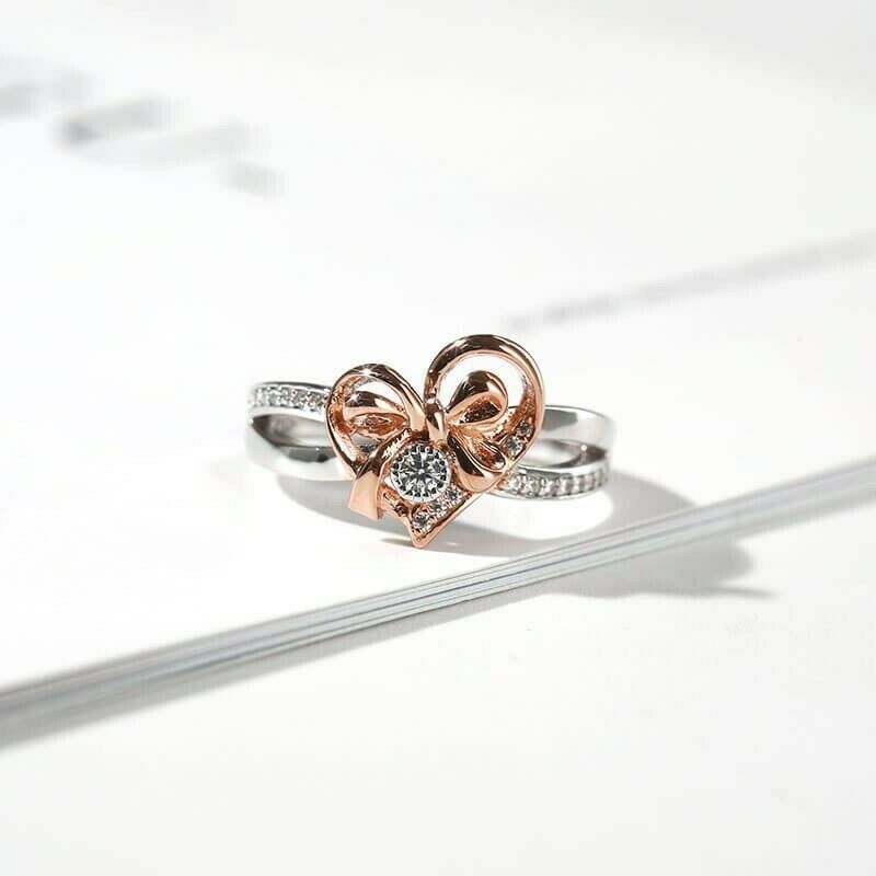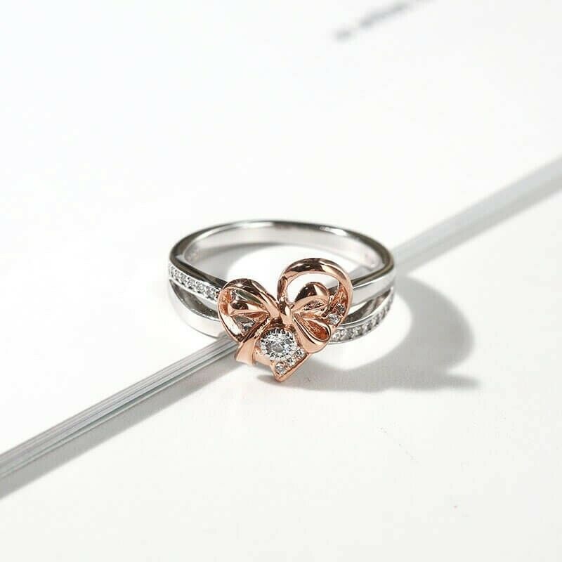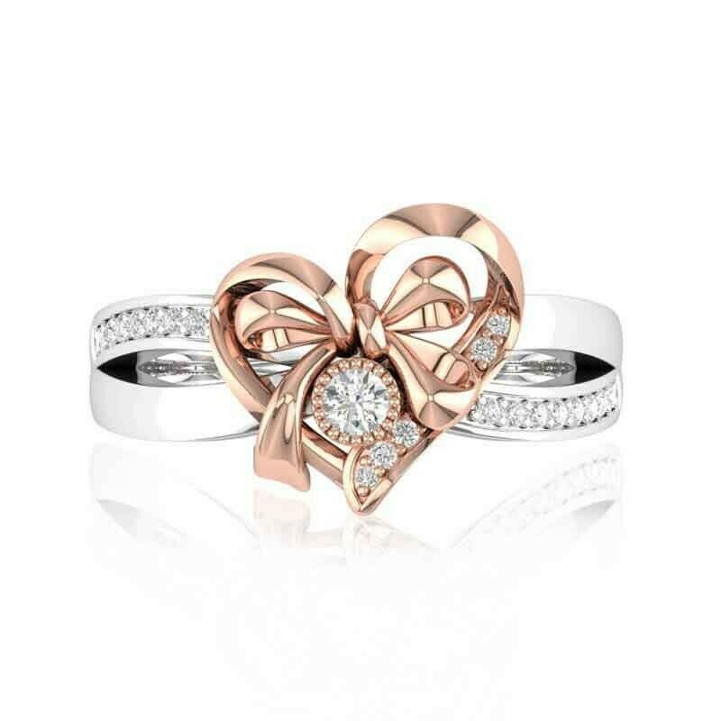 1Ct Round Cut Diamond Heart Knot Split Shank Engagement Ring 14K White Gold Over