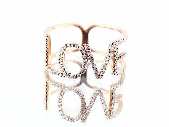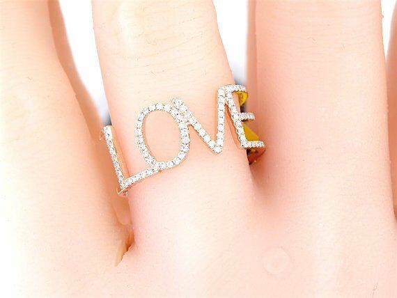1ct Round Cut Diamond Love Word Valentine Promise Ring 14k White Gold Finish