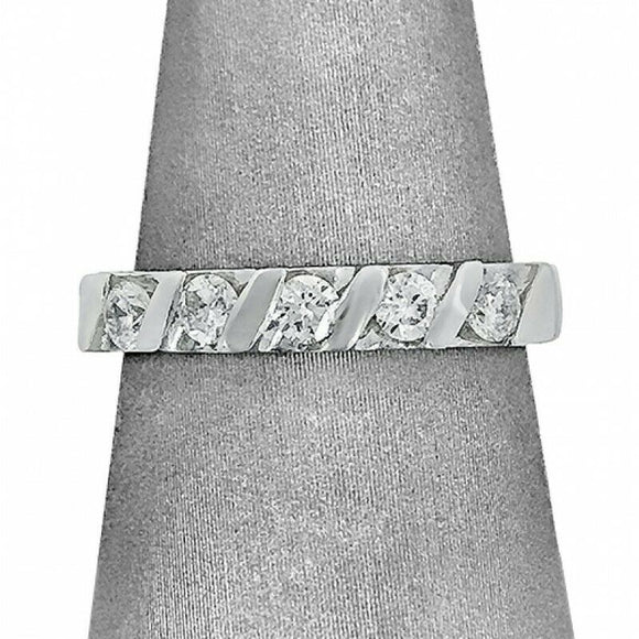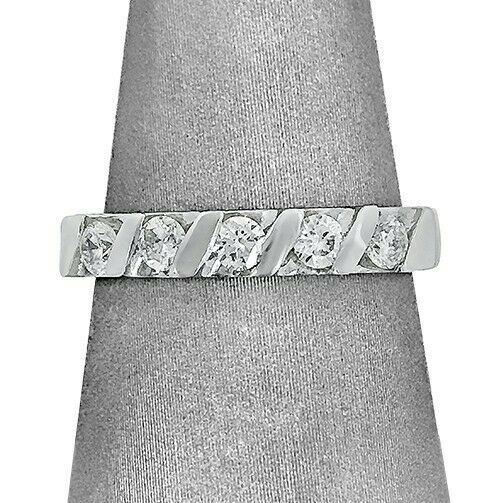 1Ct Round Cut Diamond Minimalist Five Stone Wedding Band 14K White Gold Finish