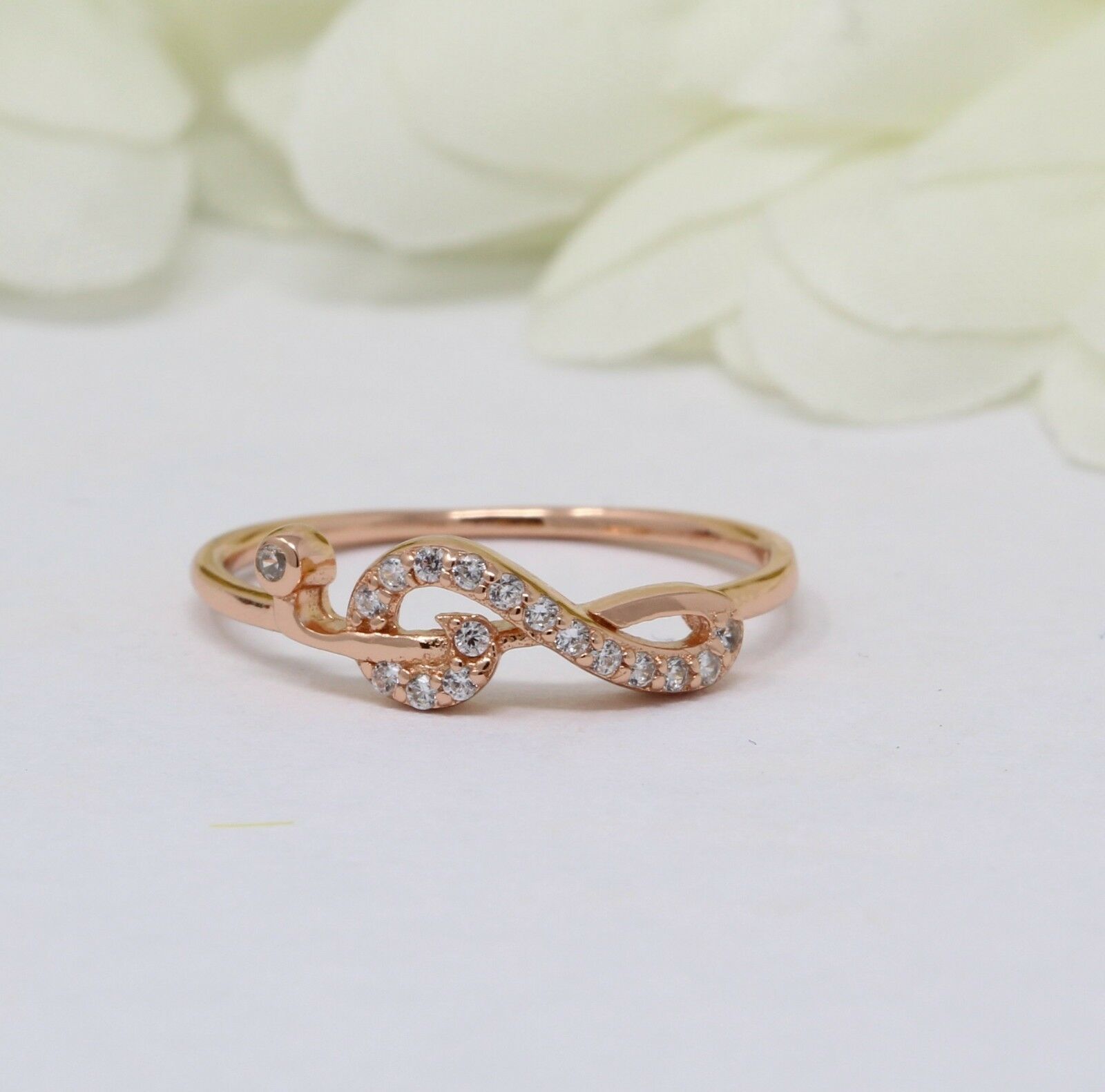1Ct Round Cut Diamond Musical Note Design Engagement Ring 14K Rose Gold Finish