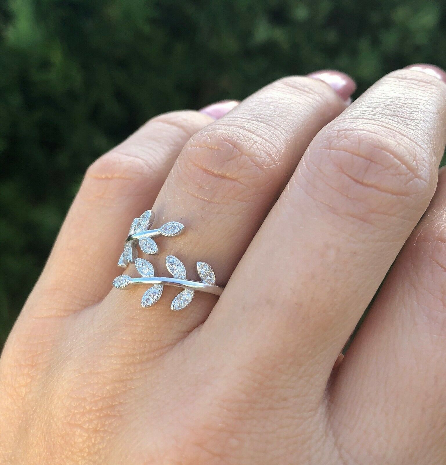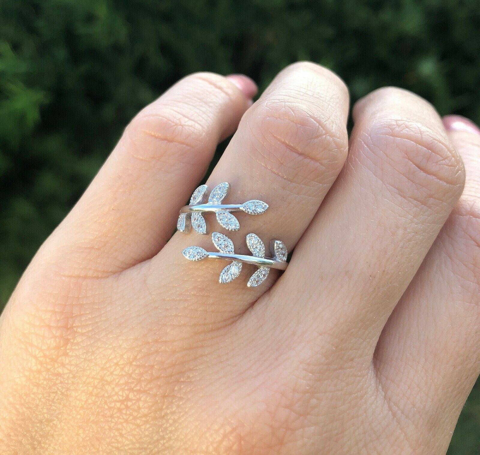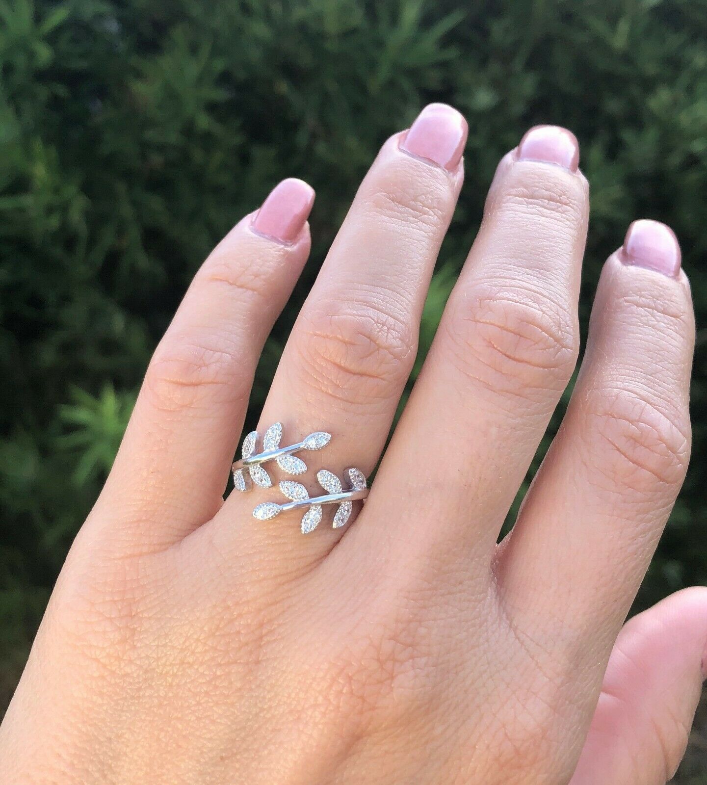 1Ct Round Cut Diamond Olive Branch Promise Engagement Ring 14K White Gold Finish