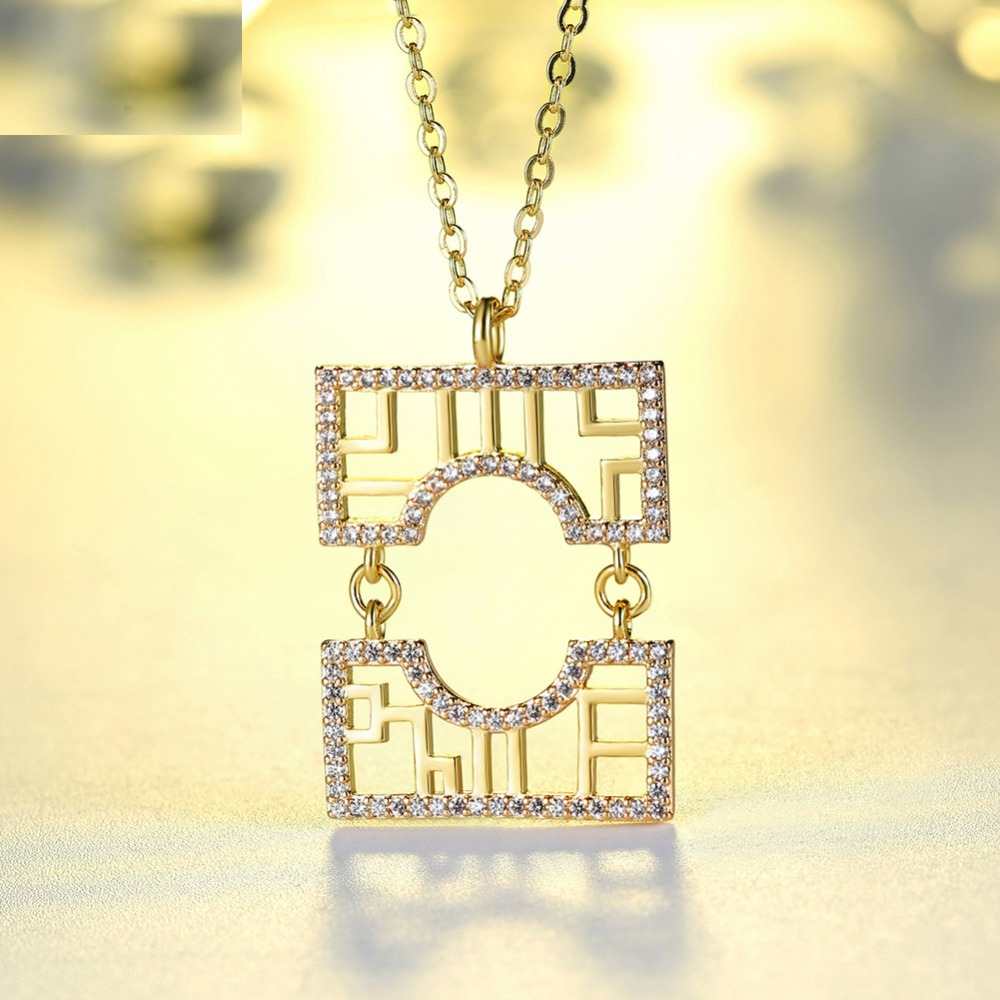 1ct Round Cut Diamond Pendant Chain Hollowed Wall Pattern 14k Yellow Gold Finish