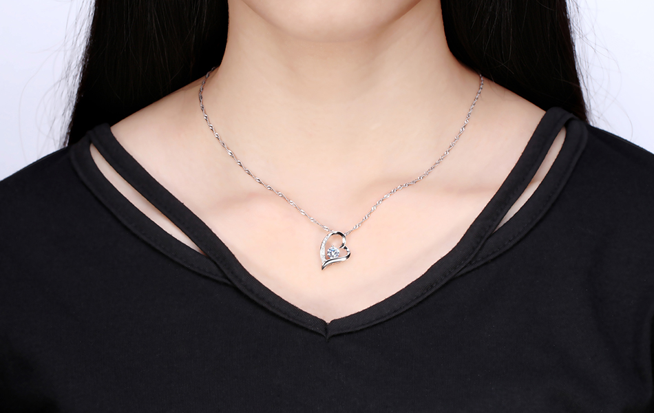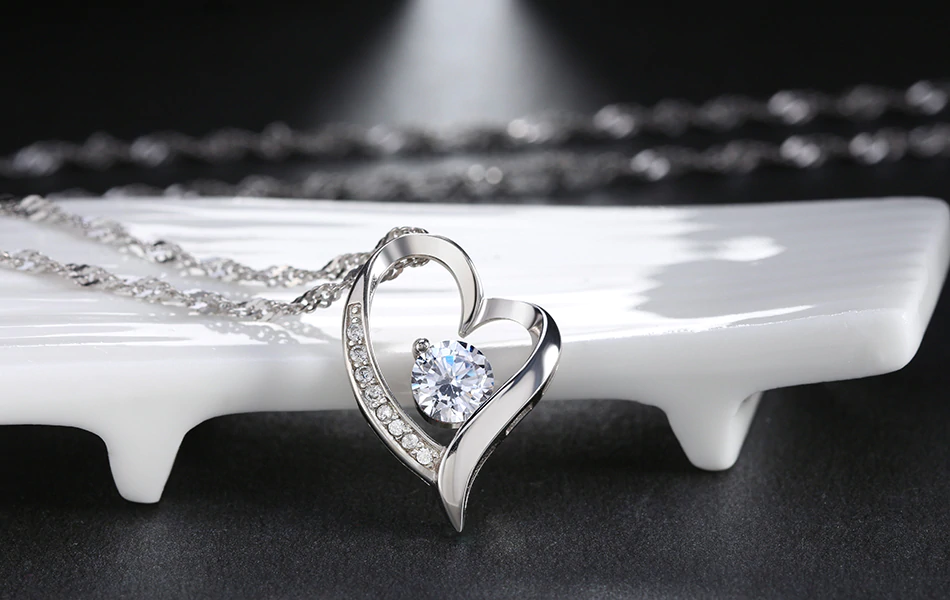 1ct Round Cut Diamond Pendant Crystal Heart Shape 14k White Gold Finish NO CHAIN
