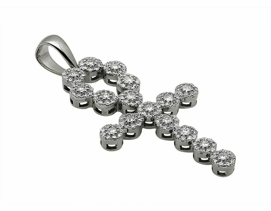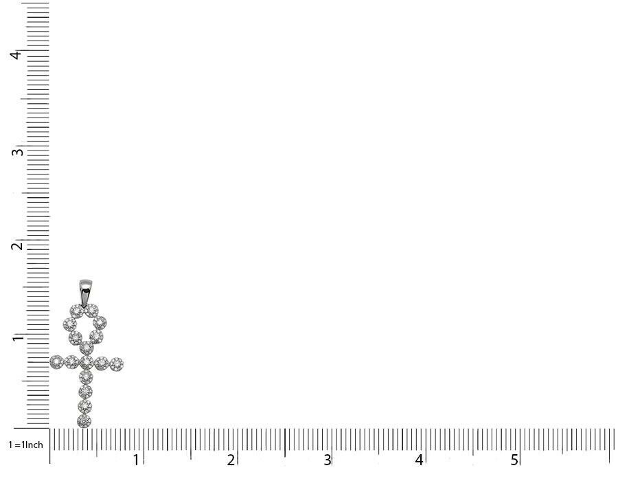 1ct Round Cut Diamond Single Row Ankh Cross Charm Pendant 14k White Gold Finish